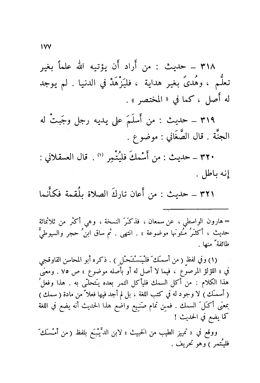 320 - حَدِيثُ مَنْ أَسْمَكَ فَلْيُتْمِرْ قَالَ الْعَسْقَلانِيُّ إِنَّهُ بَاطِلٌ