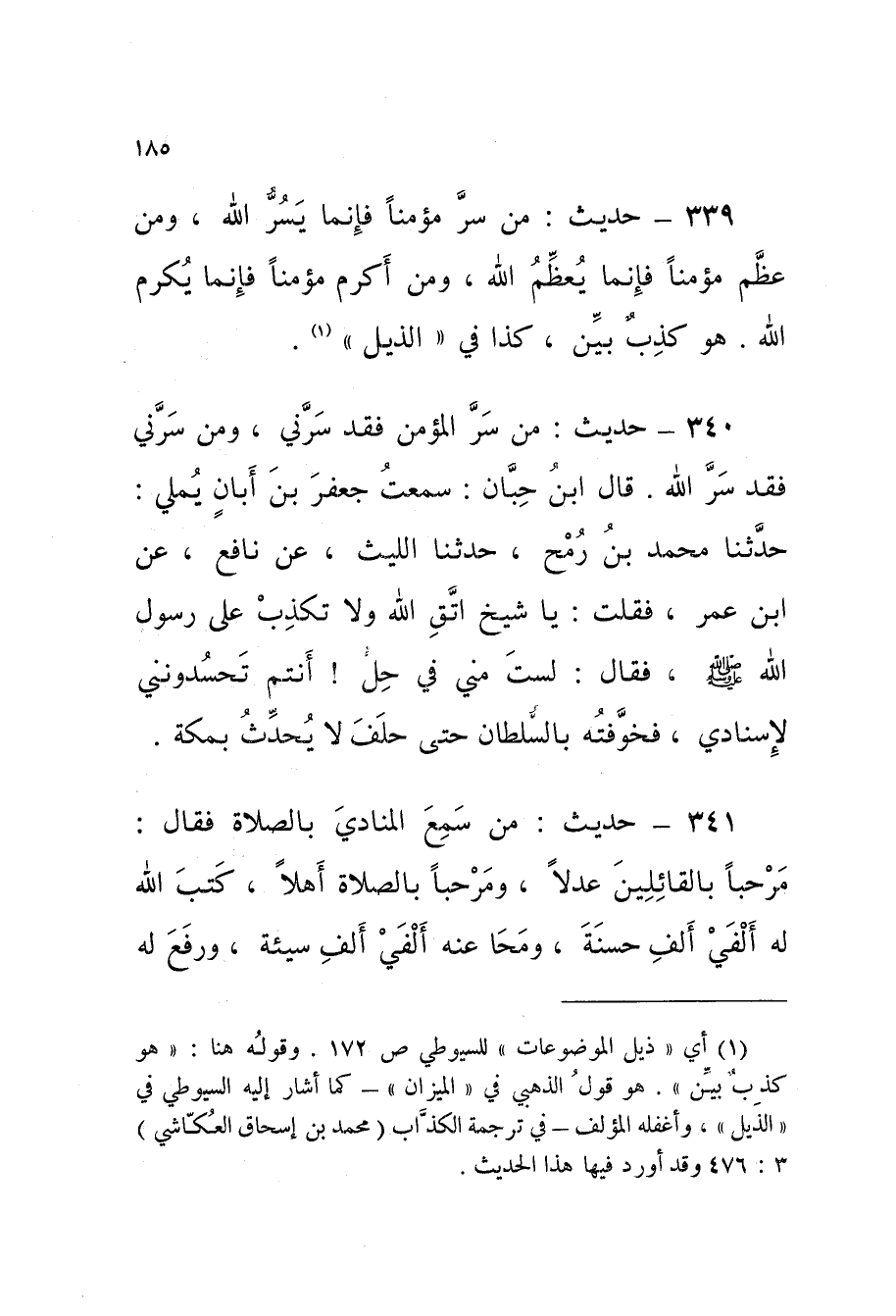 339 - حَدِيثُ مَنْ سَرَّ مُؤْمِنًا فَإِنَّمَا يَسُرُّ اللَّهَ وَمَنْ عَظَّمَ مُؤْمِنًا فَإِنَّمَا يُعَظِّمُ اللَّهَ وَمَنْ أَكْرَمَ مُؤْمِنًا فَإِنَّمَا يُكْرِمُ اللَّهَ هُوَ كَذِبٌ بَيِّنٌ كَذَا فِي الذَّيْلِ