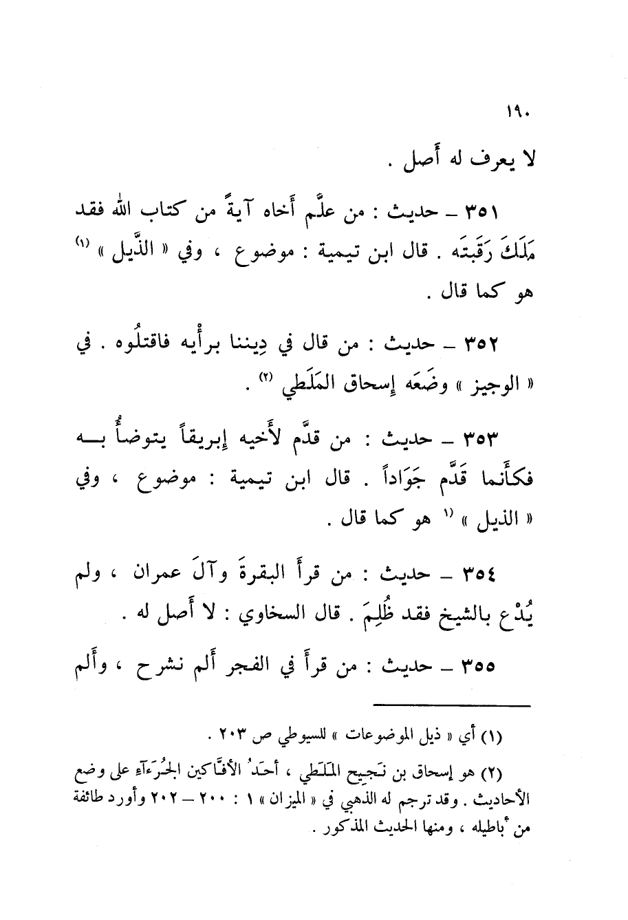 354 - حَدِيث من قَرَأَ الْبَقَرَة وَآل عِمْرَانَ وَلَمْ يُدْعَ بِالشَّيْخِ فَقَدْ ظُلِمَ قَالَ السَّخَاوِيُّ لَا أَصْلَ لَهُ