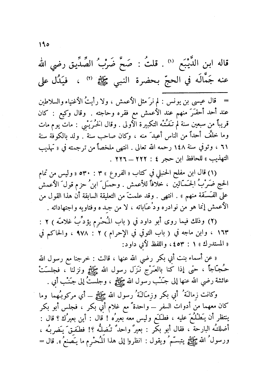 قَالَهُ ابْنُ الدَّيْبَعِ قُلْتُ صَحَّ ضَرَبَ الصِّدِّيقُ رَضِيَ اللَّهُ عَنْهُ جَمَّالَهُ فِي الْحَجِّ بِحَضْرَةِ النَّبِيِّ صَلَّى اللَّهُ عَلَيْهِ وَسَلَّمَ فَيَدُلُّ عَلَى