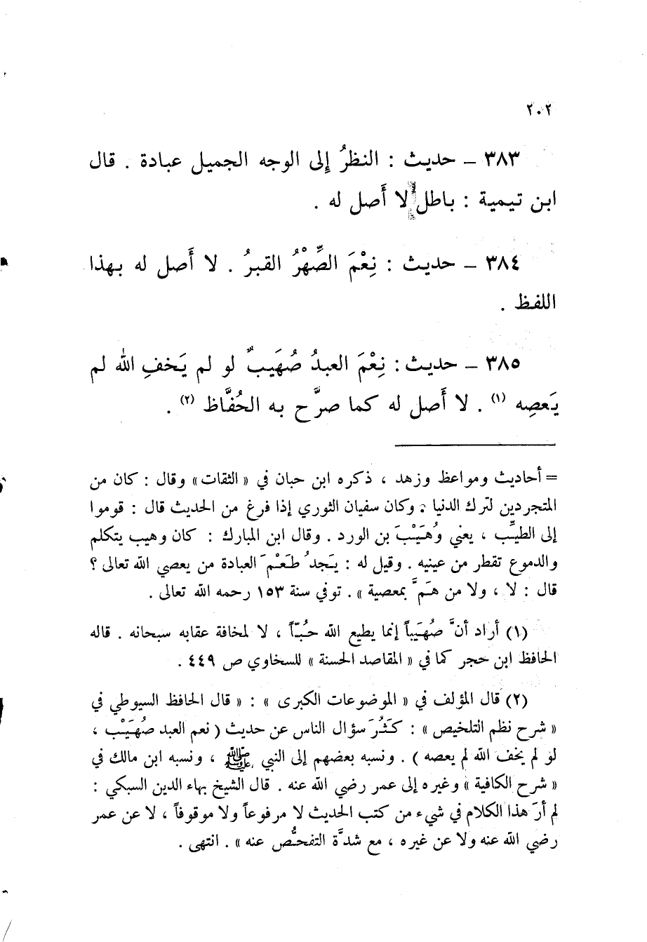385 - حَدِيثُ نِعْمَ الْعَبْدُ صُهَيْبٌ لَوْ لَمْ يَخَفِ اللَّهَ لَمْ يَعْصِهِ لَا أَصْلَ لَهُ كَمَا صَرَّحَ بِهِ الْحُفَّاظُ