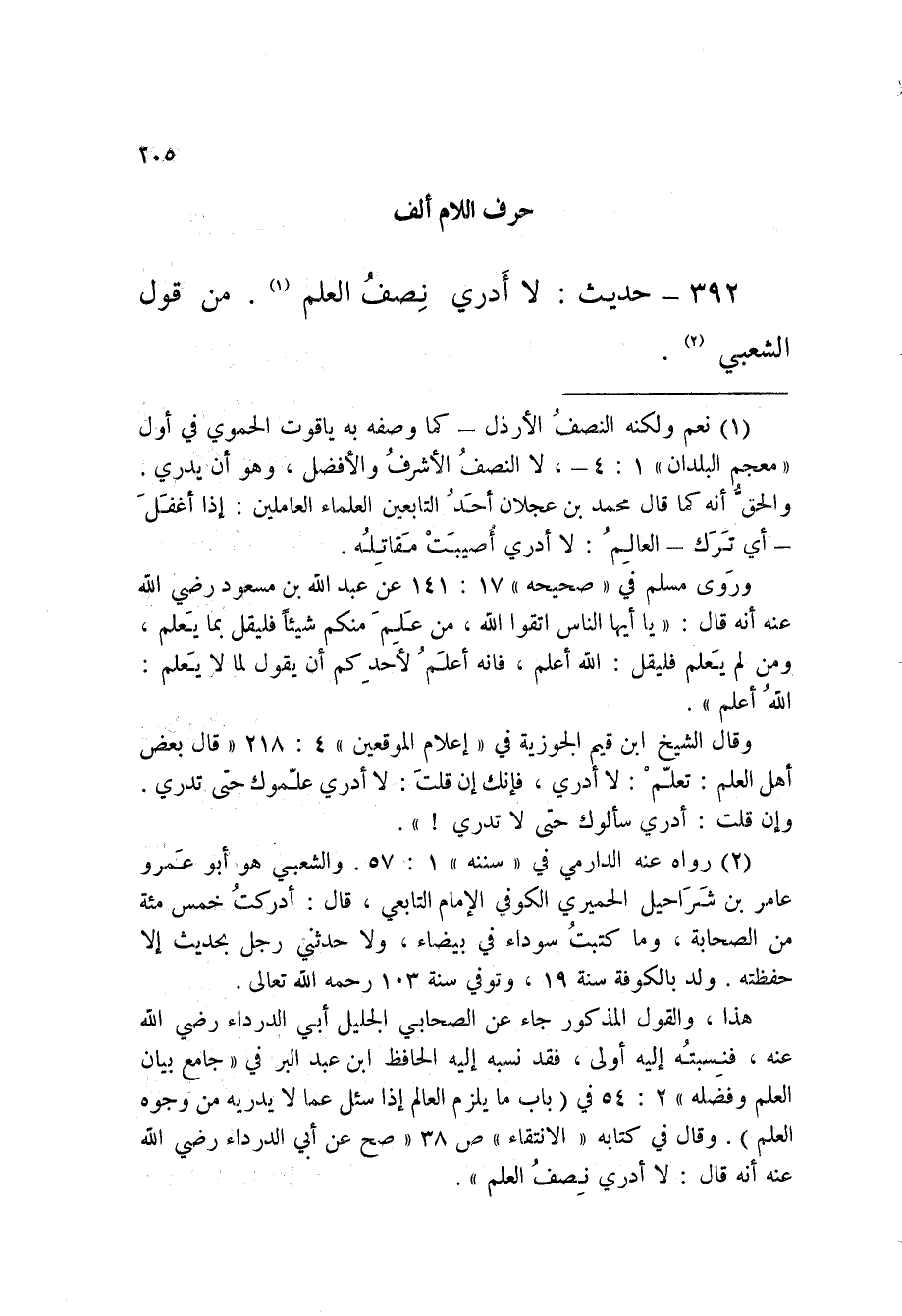 392 - حَدِيثُ لَا أَدْرِي نِصْفَ الْعِلْمِ مِنْ قَوْلِ الشَّعْبِيِّ