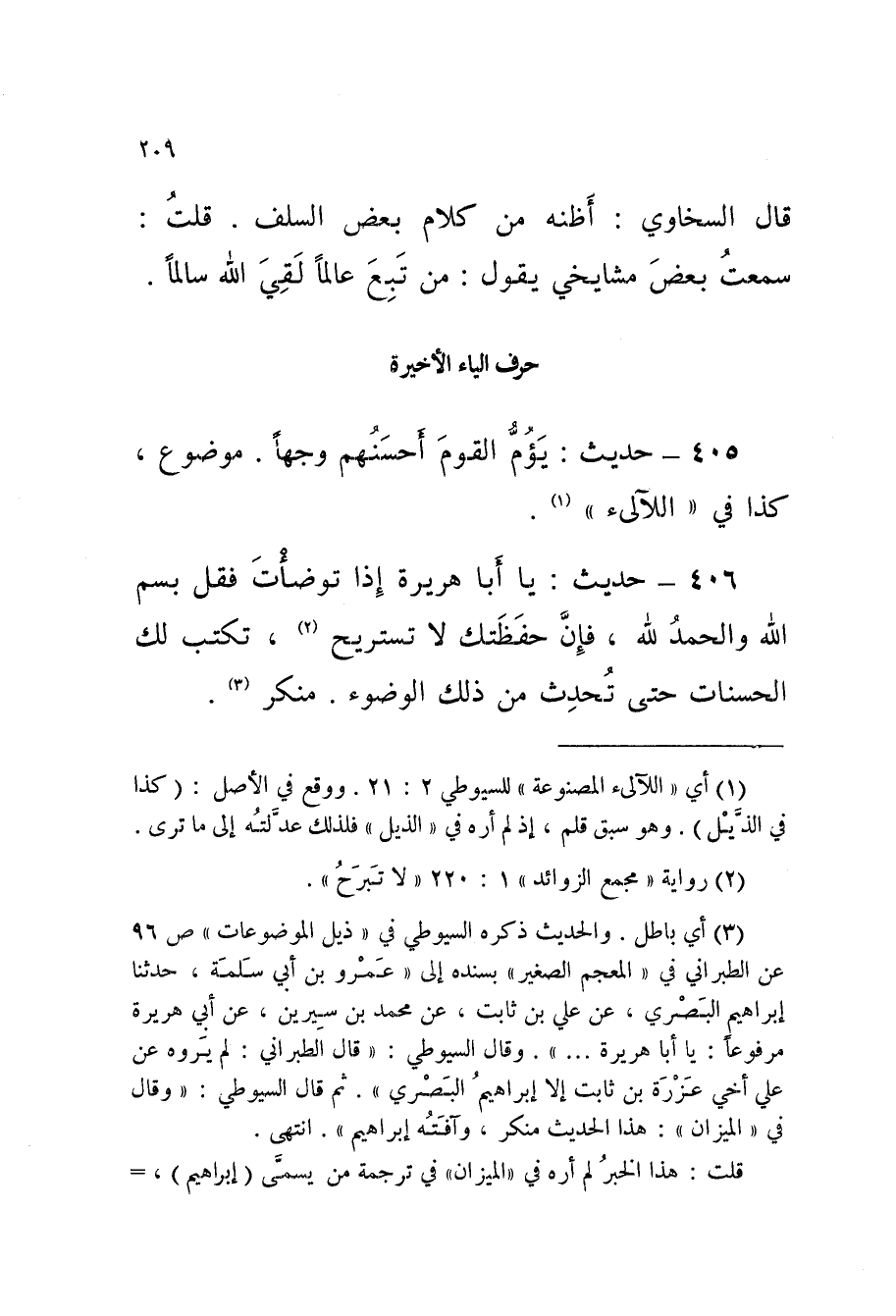 405 - حَدِيثُ يَؤُمُّ الْقَوْمَ أَحْسَنُهُمْ وَجها مَوْضُوع كَذَا فِي اللآلىء
