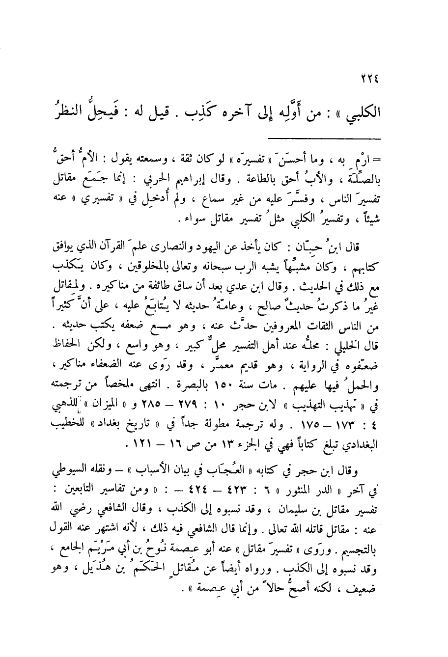 الْكَلْبِيِّ مِنْ أَوَّلِهِ إِلَى آخَرِهِ كَذِبٌ قِيلَ لَهُ فَيَحِلُّ النَّظَرُ
