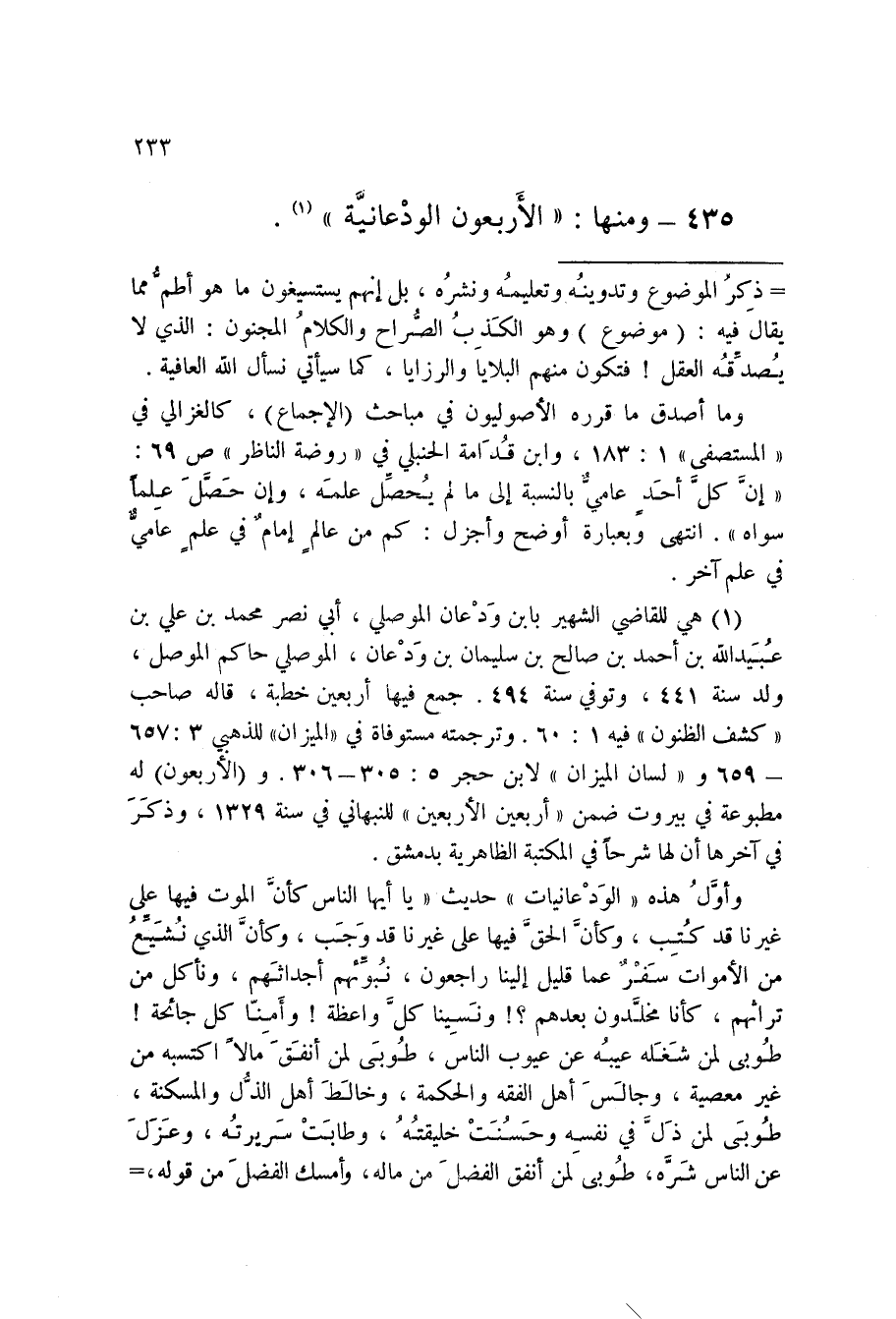 435 - حَدِيث وَمِنْهَا الْأَرْبَعُونَ الودعانية
