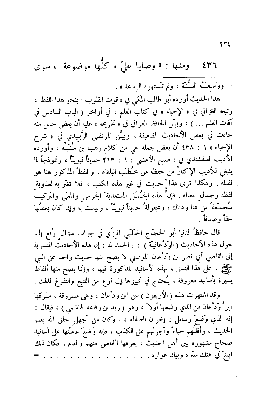 436 - حَدِيث وَمِنْهَا وَصَايَا عَلِيٍّ كُلُّهَا مَوْضُوعَةٌ سِوَى
