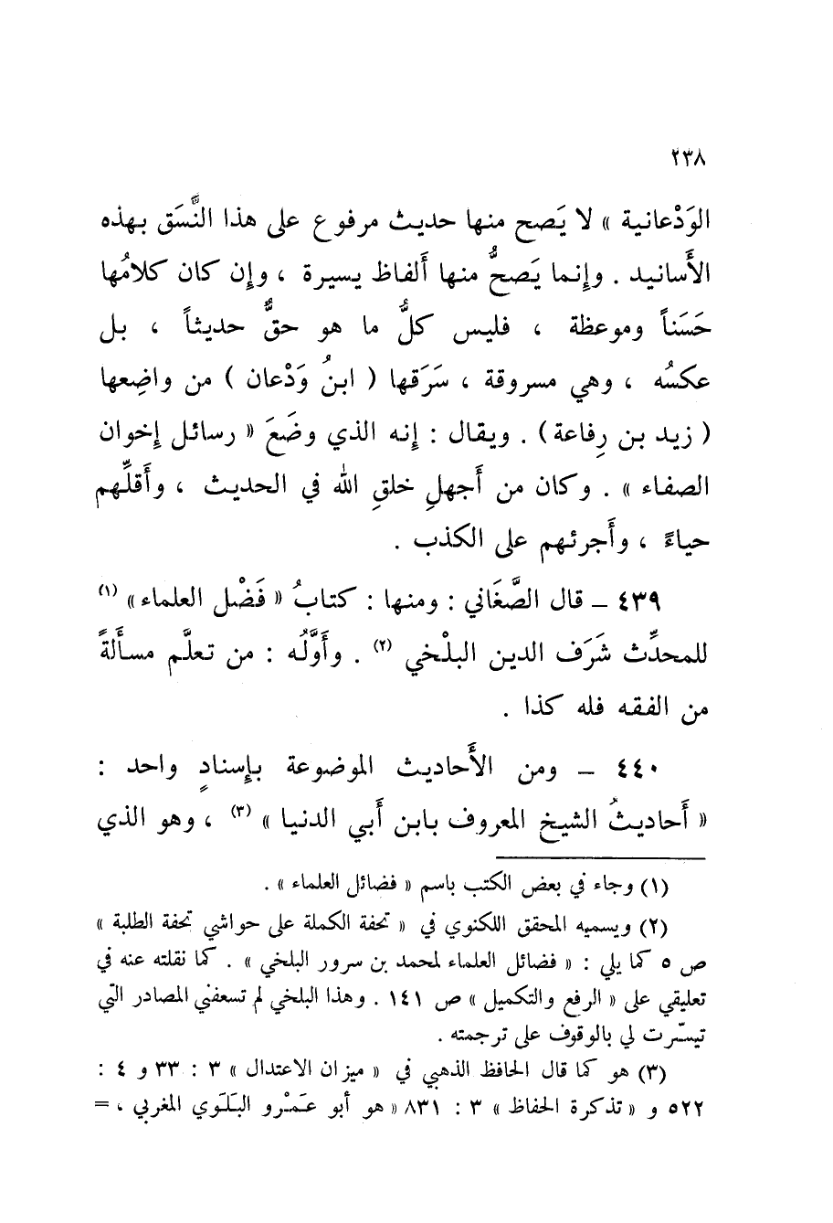 439 - حَدِيث قَالَ الصَّغَانِيُّ وَمِنْهَا كِتَابُ فَضْلِ الْعُلَمَاءِ لِلْمُحَدِّثِ شَرَفِ الدِّينِ الْبَلْخِيِّ وَأَوَّلُهُ مَنْ تَعَلَّمَ مَسْأَلَةً من الْفِقْه فَلهُ كَذَا