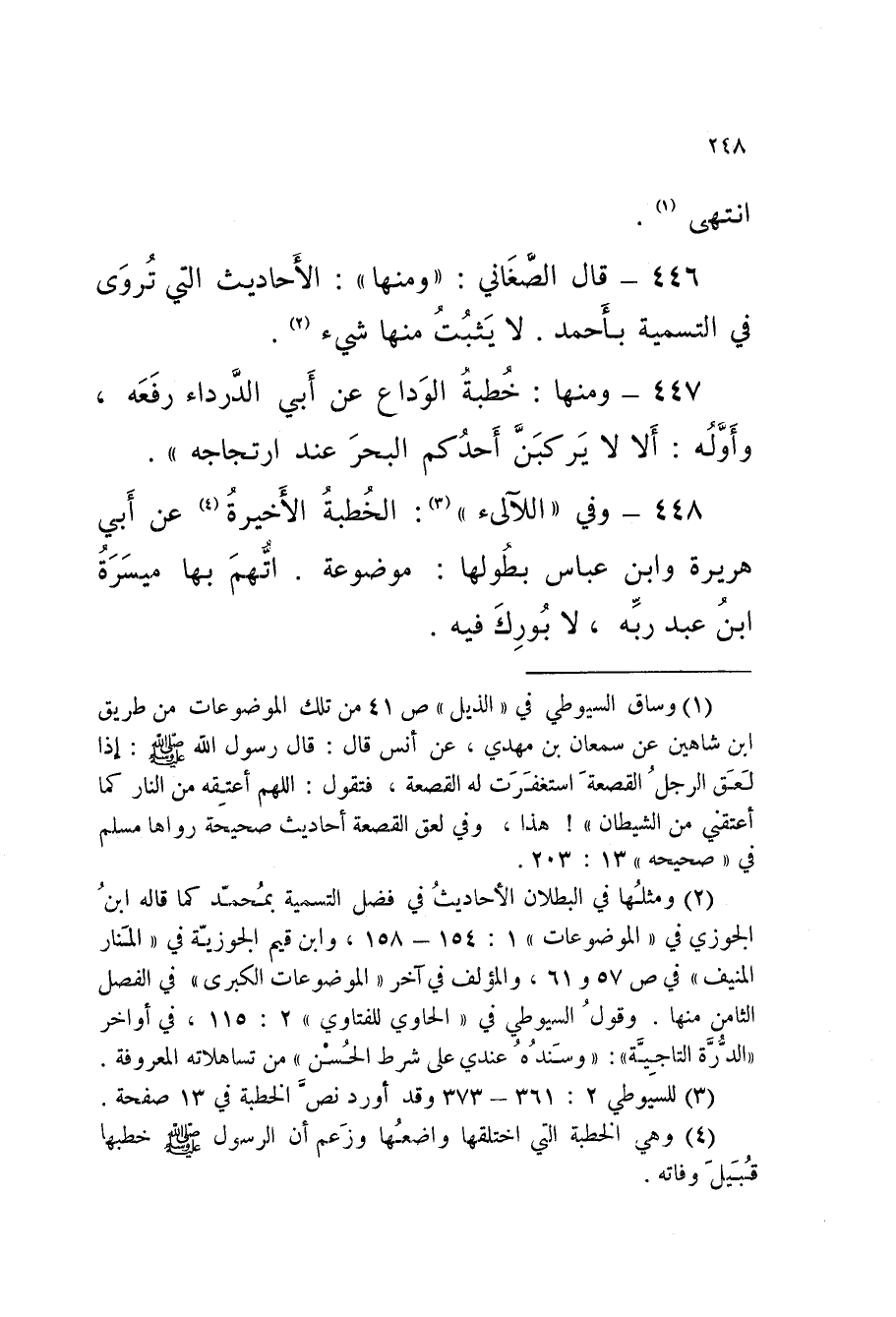 446 - حَدِيث قَالَ الصَّغَانِيُّ وَمِنْهَا الأَحَادِيثُ الَّتِي تُرْوَى فِي التَّسْمِيَة بِأَحْمَد لَا يثبت مِنْهَا شَيْء