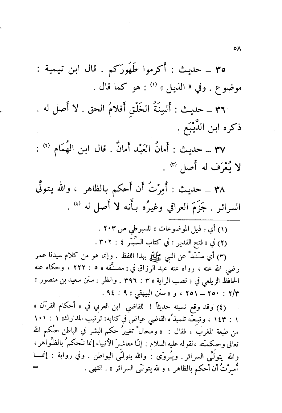 38 - حَدِيثُ أُمِرْتُ أَنْ أَحْكُمَ بِالظَّاهِرِ وَاللَّهُ يَتَوَلَّى السَّرَائِرَ جَزَمَ الْعِرَاقِيُّ وَغَيْرُهُ بِأَنَّهُ لَا أَصْلَ لَهُ 00
