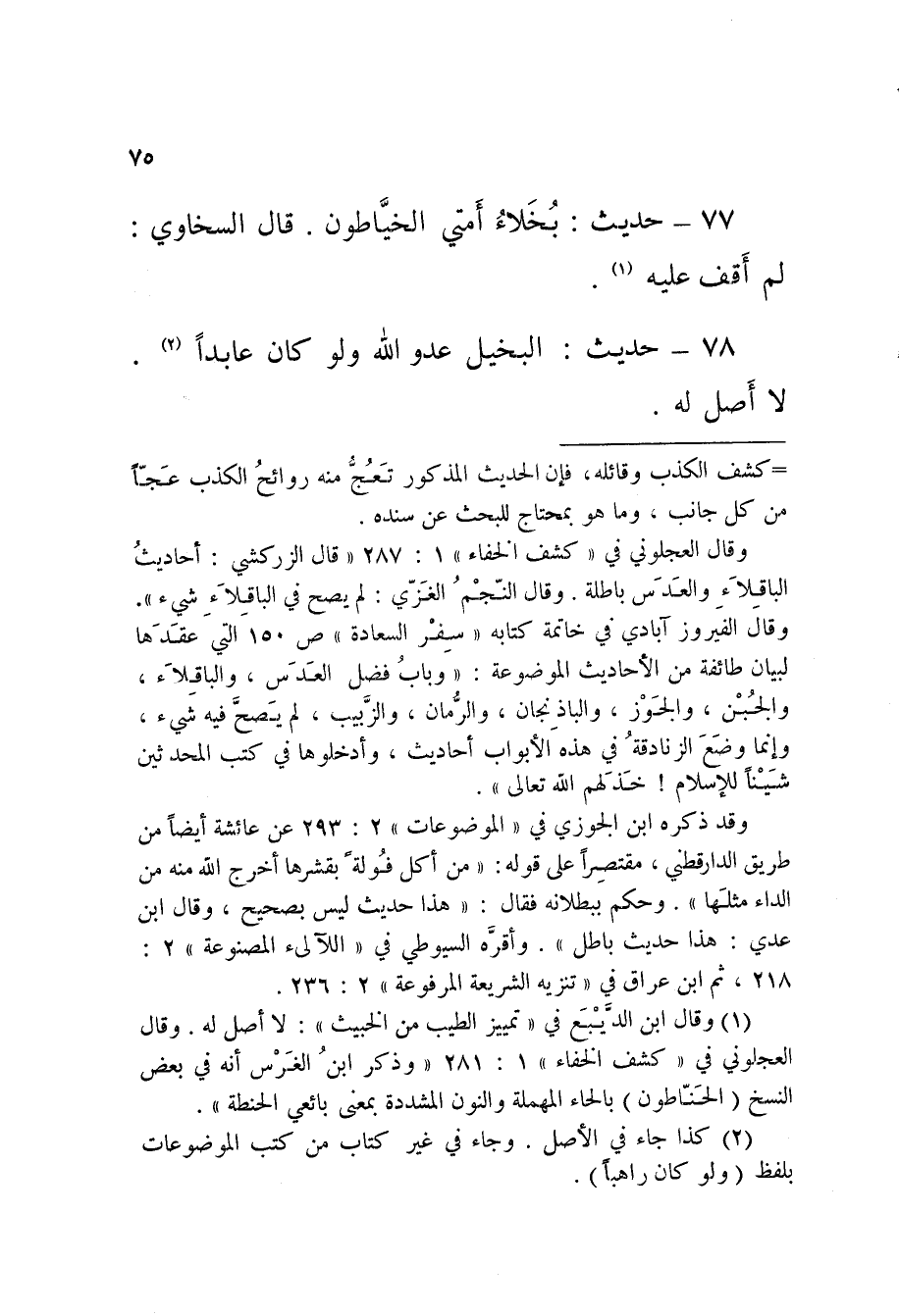 77 - حَدِيثُ بُخَلاءُ أُمَّتِي الْخَيَّاطُونَ قَالَ السَّخَاوِيُّ لَمْ أَقِفْ عَلَيْهِ