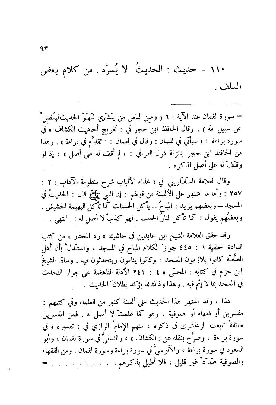 110 - حَدِيثُ الْحَدِيثُ لَا يُسْرَدُ مِنْ كَلامِ بَعْضِ السّلف