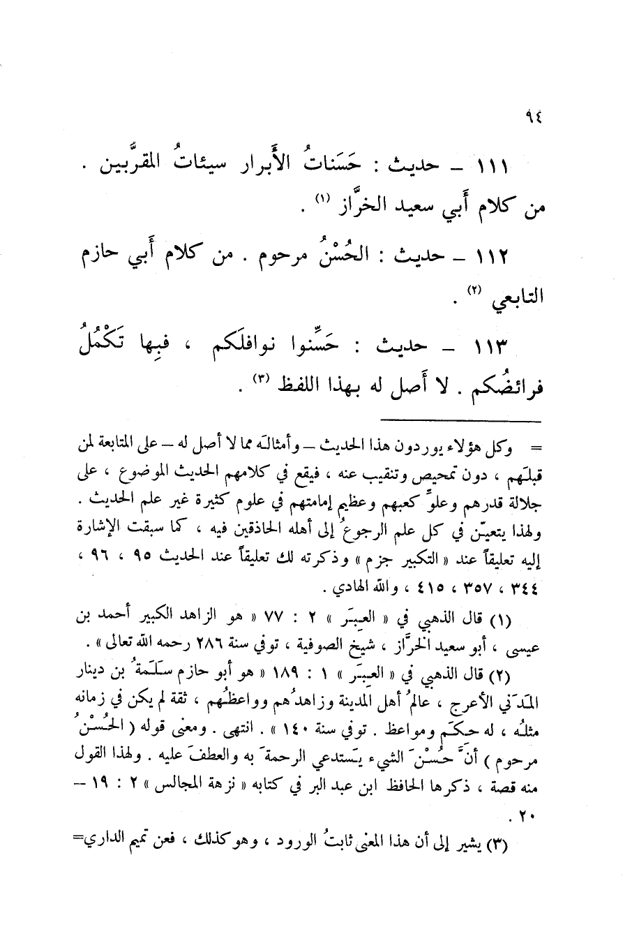 111 - حَدِيثُ حَسَنَاتُ الأَبْرَارِ سَيِّئَاتُ الْمُقَرَّبِينَ مِنْ كَلامِ أَبِي سَعِيدٍ الْخَرَّازِ