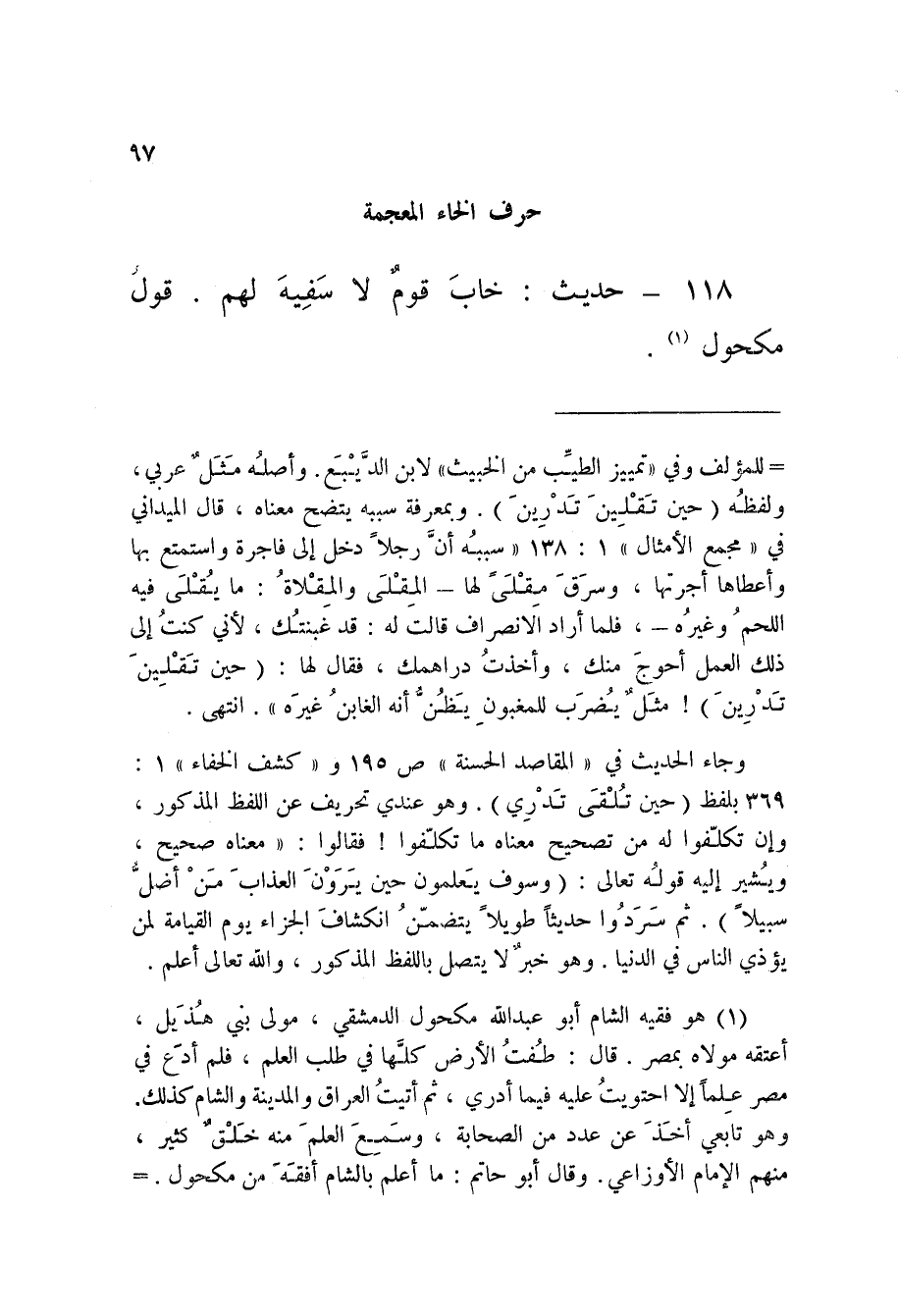 118 - حَدِيثُ خَابَ قَوْمٌ لَا سَفِيهَ لَهُمْ قَوْلُ مَكْحُولٍ
