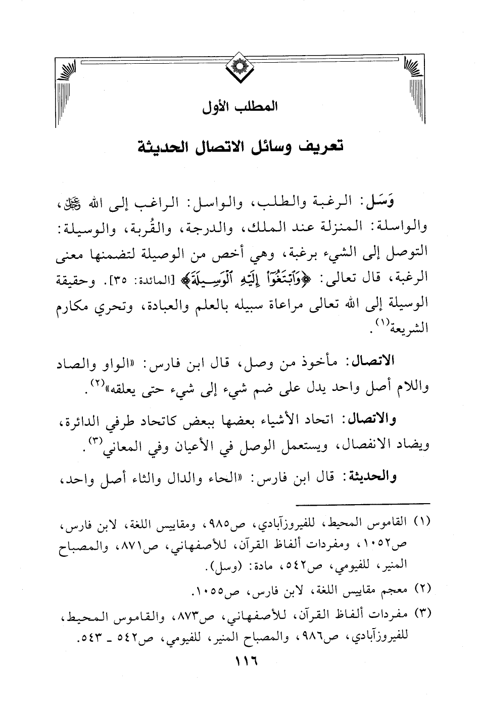 (¬2) القاموس المحيط، للفيروزآبادي، ص 985، ومقاييس اللغة، لابن فارس، ص 1052، ومفردات ألفاظ القرآن، للأصفهاني، ص 871، والمصباح المنير، للفيومي، ص 542، مادة) وسل).