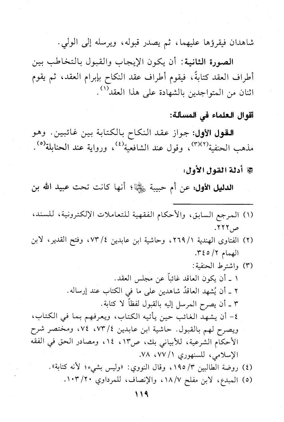 4 - أن يشهد الغائب حين يأتيه الكتاب، ويعرفهم بما في الكتاب، ويصرح لهم بالقبول. حاشية ابن عابدين (4/ 73، 74)، ومختصر شرح الأحكام الشرعية، للأبياني بك، ص 13، 14، ومصادر الحق في الفقه الإسلامي، للسنهوري (1/ 77، 78).