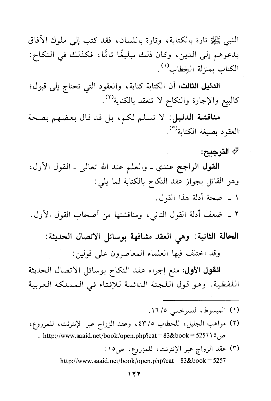 (¬2) عقد الزواج عبر الإنترنت، للمزروع، ص 15، ومواهب الجليل، للحطاب (5/ 43).
