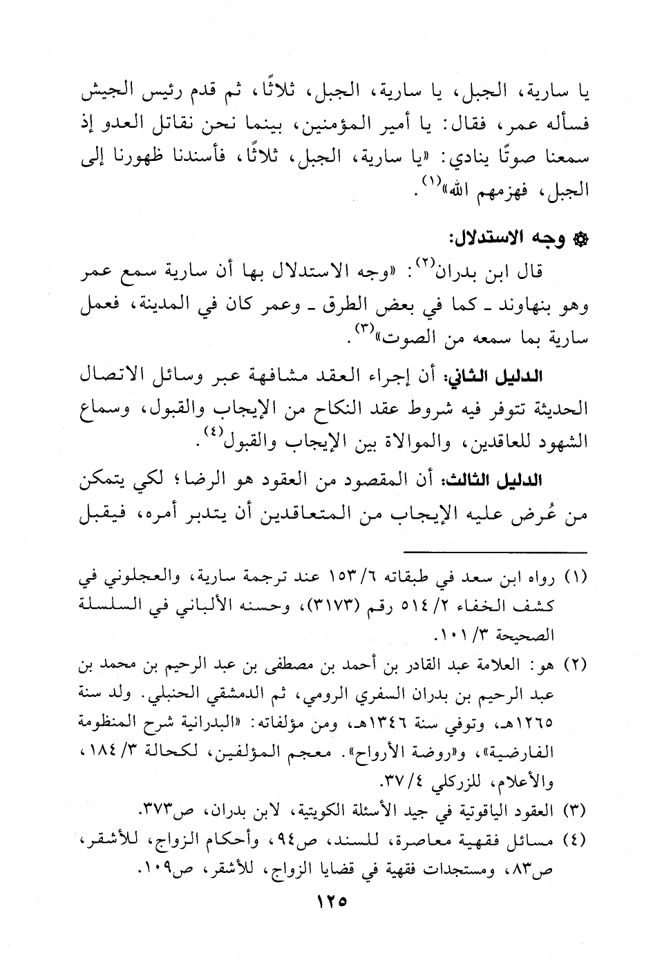 وجه الاستدلال: قال ابن بدران (¬2): «وجه الاستدلال بها أن سارية سمع عمر وهو بنهاوند- كما في بعض الطرق- وعمر كان في المدينة، فعمل سارية بما سمعه من الصوت» (¬3).
