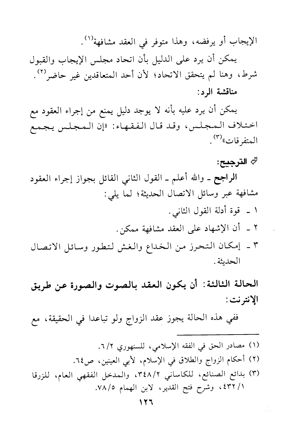 الراجح- والله أعلم- القول الثاني القائل بجواز إجراء العقود مشافهة عبر وسائل الاتصال الحديثة؛ لما يلي:
