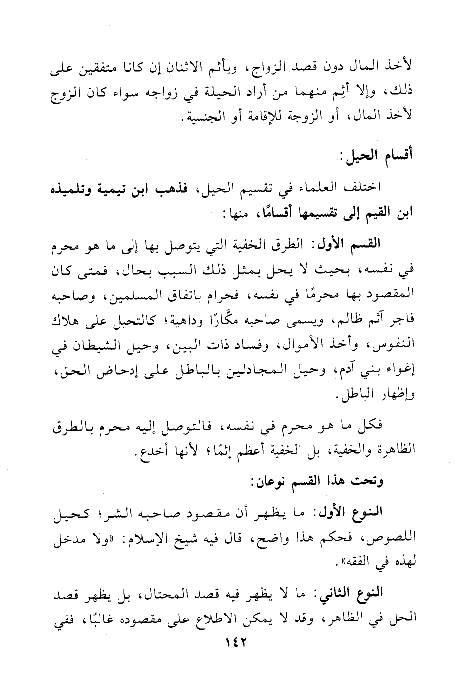 اختلف العلماء في تقسيم الحيل، فذهب ابن تيمية وتلميذه ابن قيم الجوزية إلى تقسيمها أقسامًا، منها: