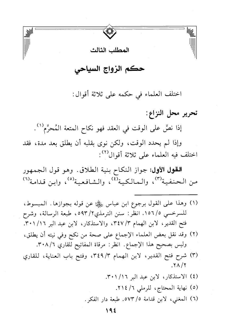 القول الأول: جواز النكاح بنية الطلاق. وهو قول الجمهور من الحنفية (¬2)، والمالكية (¬3)، والشافعية (¬4)، وابن قدامة (¬5)