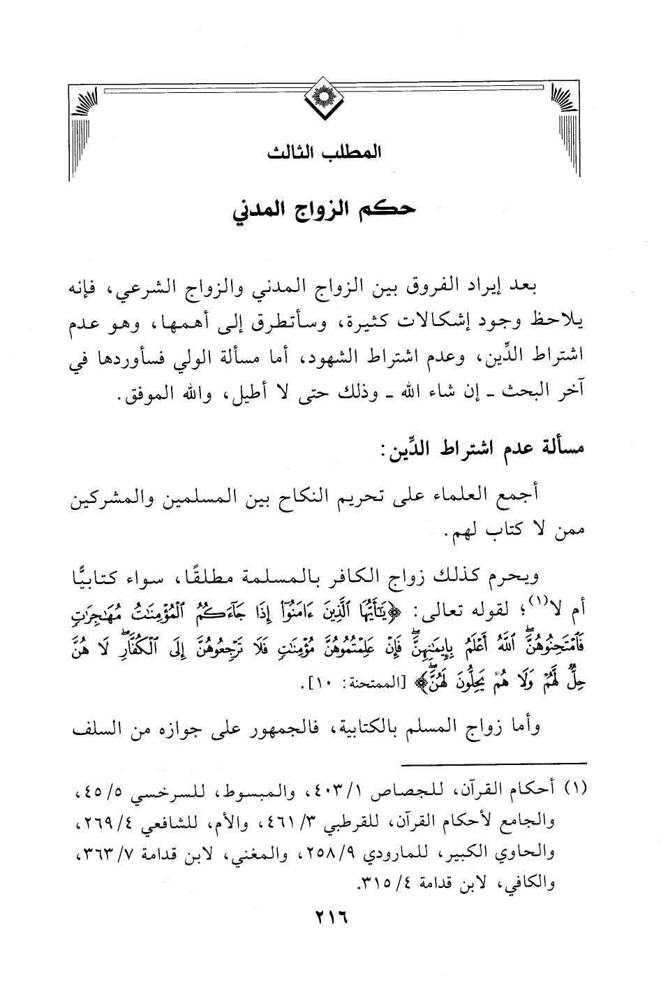 (¬1) أحكام القرآن، للجصاص (1/ 403)، والمبسوط، للسرخسي (5/ 45)، والجامع لأحكام القرآن، للقرطبي (3/ 461)، والأم، للشافعي (5/ 9)، والحاوي الكبير، للمارودي (4/ 258)، والمغني، لابن قدامة (7/ 363)، والكافي، لابن قدامة (4/ 315).