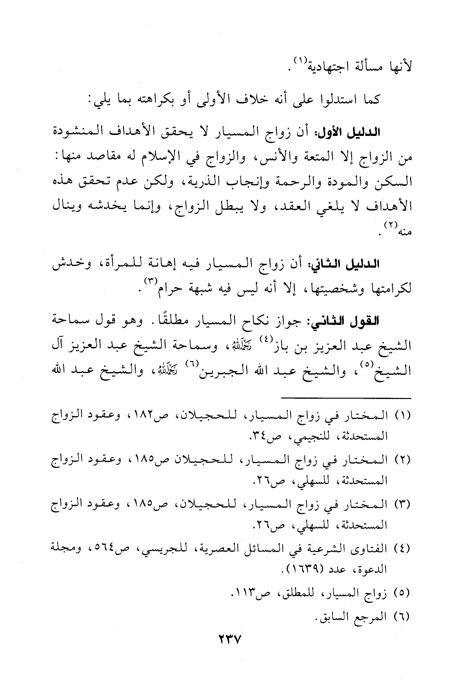 (¬2) المختار في زواج المسيار، للحجيلان ص 185، وعقود الزواج المستحدثة، للسهلي، ص 26.