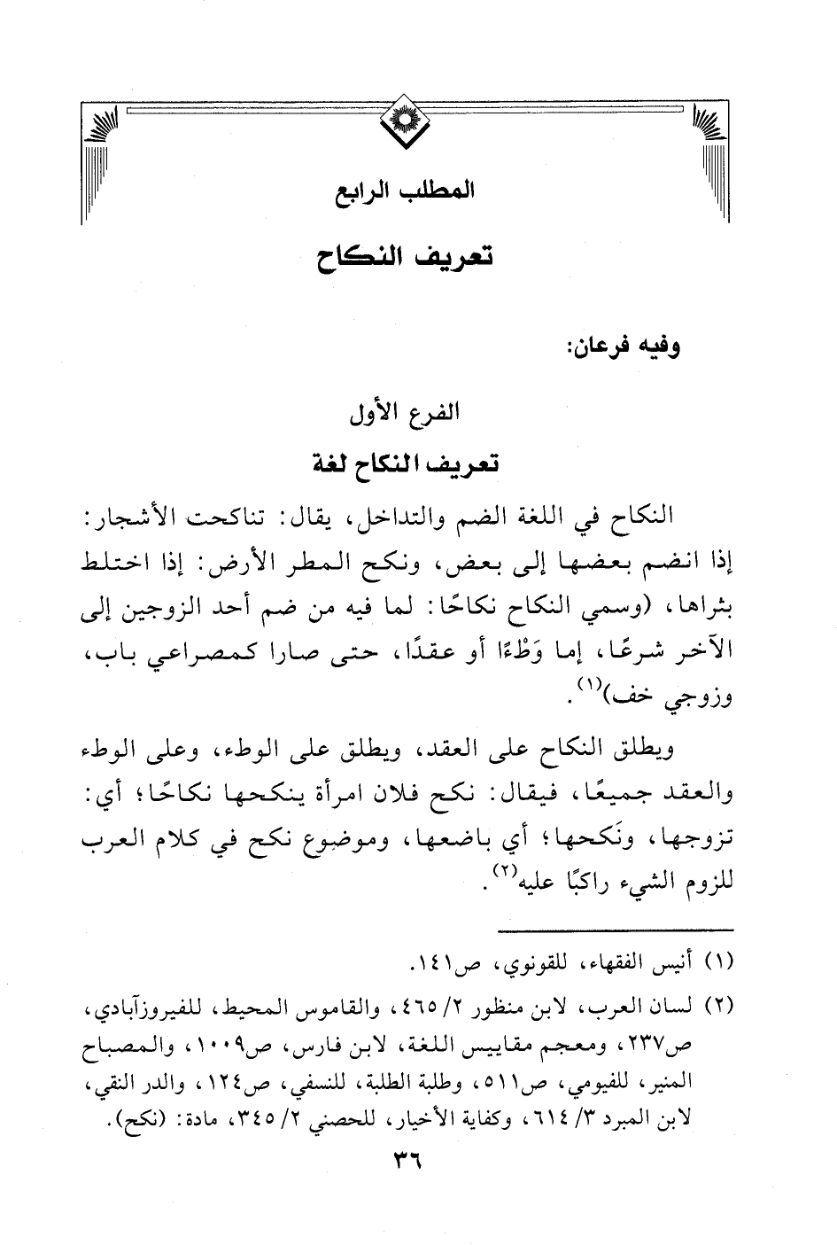(¬2) لسان العرب، لابن منظور (2/ 465)، والقاموس المحيط، للفيروزآبادي، ص 237، ومعجم مقاييس اللغة، لابن فارس، ص 1009، والمصباح المنير، للفيومي، ص 511، وطلبة الطلبة، للنسفي، ص 124، والدر النقي، لابن المبرد (3/ 614)، وكفاية الأخيار، للحصني (2/ 345)، مادة (نكح).