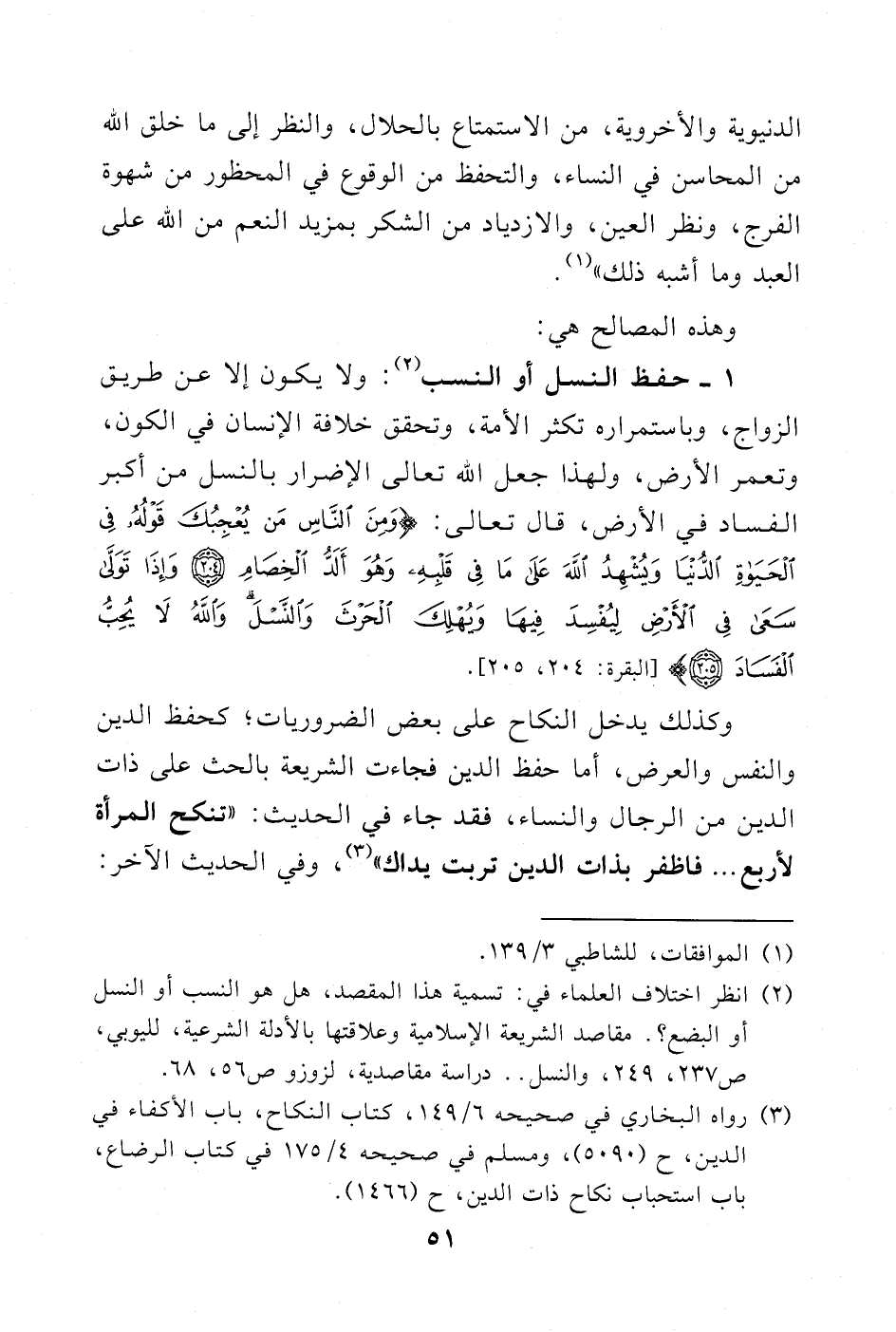 (¬2) انظر اختلاف العلماء في تسمية هذا المقصد، هل هو النسب أو النسل أو البضع؟ . مقاصد الشريعة الإسلامية وعلاقتها بالأدلة الشرعية، لليوبي، ص 249، 237، والنسل .. دراسة مقاصدية، لزوزو ص 68، 56.