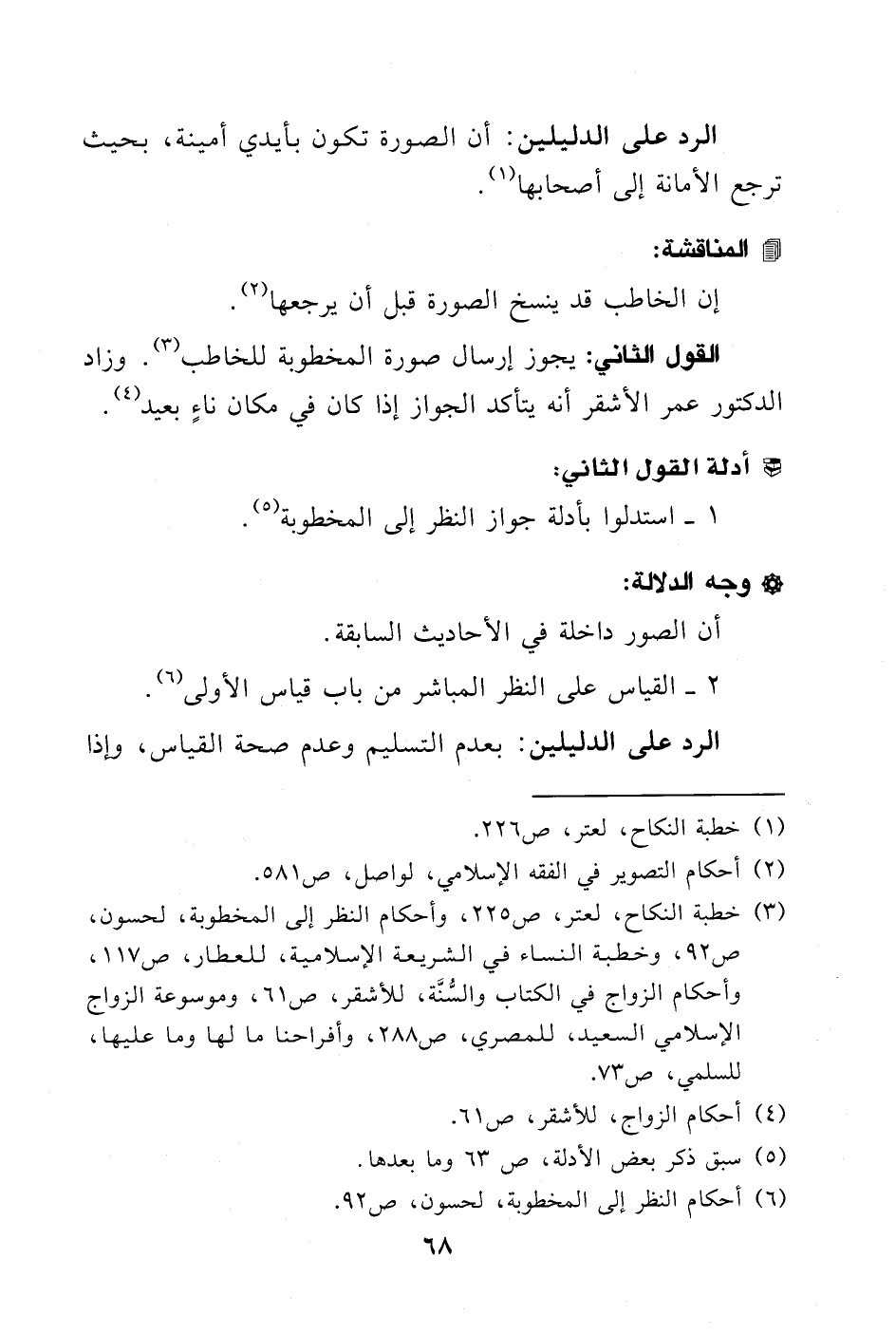 المناقشة: إن الخاطب قد ينسخ الصورة قبل أن يرجعها (¬2).