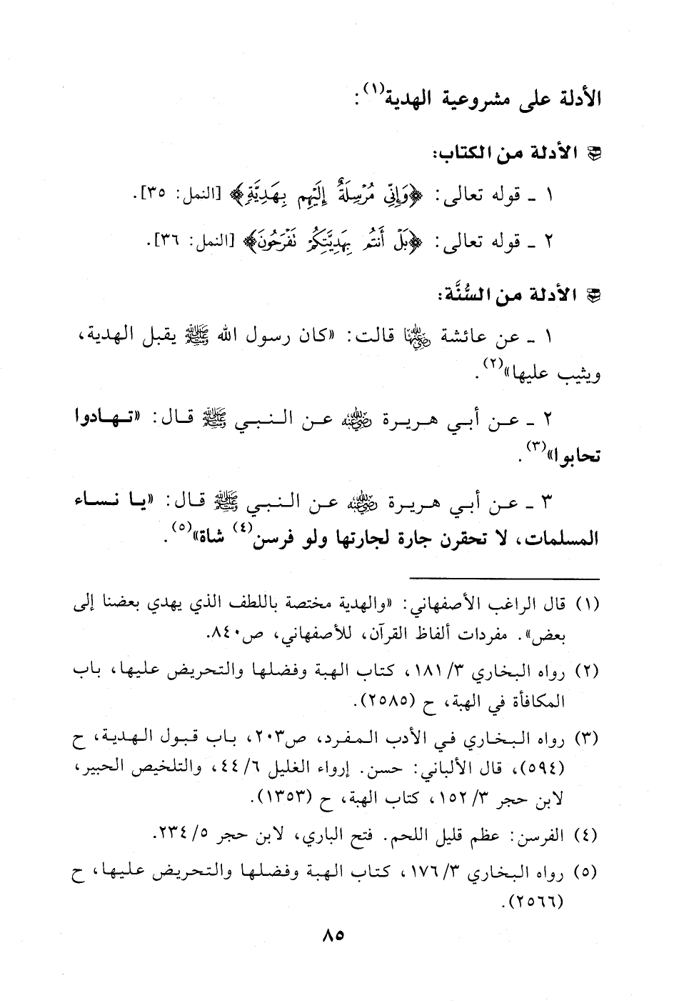 (¬1) قال الراغب الأصفهاني: "والهدية مختصة باللطف الذي يهدي بعضنا إلى بعض". مفردات ألفاظ القرآن، للأصفهاني، ص 840.
