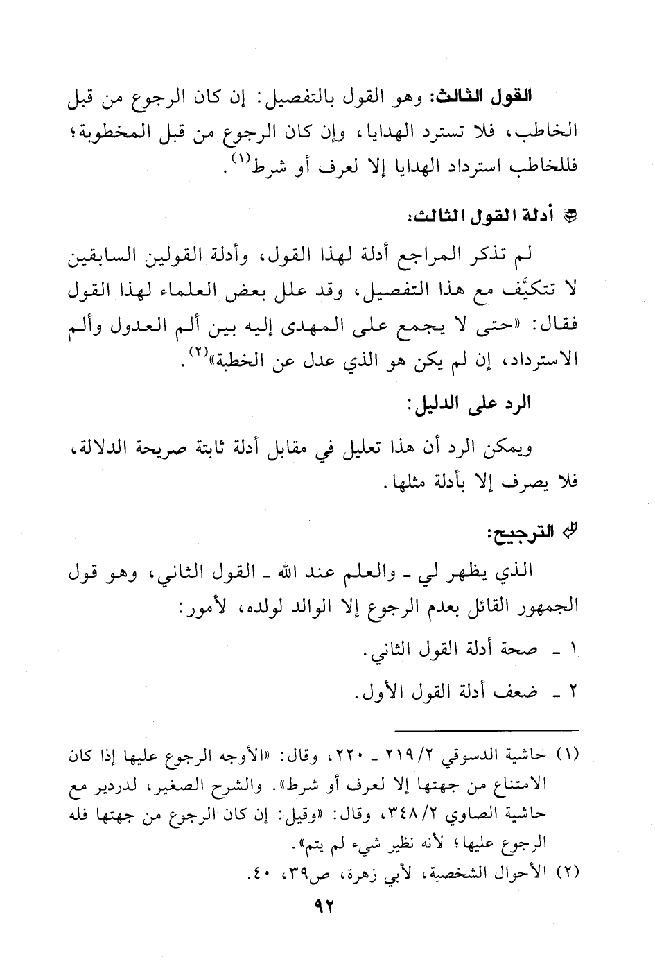 (¬2) الأحوال الشخصية، لأبي زهرة، ص 39، 40.