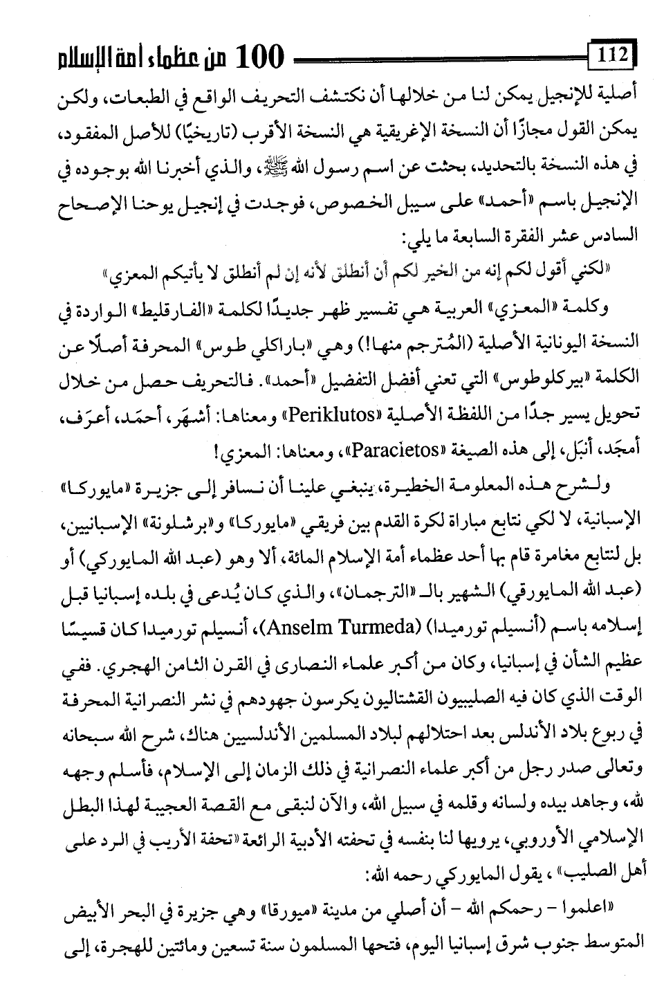 ولشرح هذه المعلومة الخطيرة، ينبغي علينا أن نسافر إلى جزيرة "مايوركا" الإسبانية، لا لكي نتابع مباراة لكرة القدم بين فريقي "مايوركا" و"برشلونة" الإسبانيين، بل لنتابع مغامرة قام بها أحد عظماء أمة الإسلام المائة، ألا وهو (عبد اللَّه المايوركي) أو (عبد اللَّه المايورقي) الشهير بالـ "الترجمان"، والذي كان يُدعى في بلده إسبانيا قبل إسلامه باسم (أنسيلم تورميدا) (Anselm Turmeda)، أنسيلم تورميدا كان قسيسًا عظيم الشأن في إسبانيا، وكان من أكبر علماء النصارى في القرن الثامن الهجري. ففي الوقت الذي كان فيه الصليبيون القشتاليون يكرسون جهودهم في نشر النصرانية المحرفة في ربوع بلاد الأندلس بعد احتلالهم لبلاد المسلمين الأندلسيين هناك، شرح اللَّه سبحانه وتعالى صدر رجل من أكبر علماء النصرانية في ذلك الزمان إلى الإسلام، فأسلم وجهه للَّه، وجاهد بيده ولسانه وقلمه في سبيل اللَّه، والآن لنبقى مع القصة العجيبة لهذا البطل الإسلامي الأوروبي، يرويها لنا بنفسه في تحفته الأدبية الرائعة "تحفة الأريب في الرد على أهل الصليب"، يقول المايوركي رحمه اللَّه: