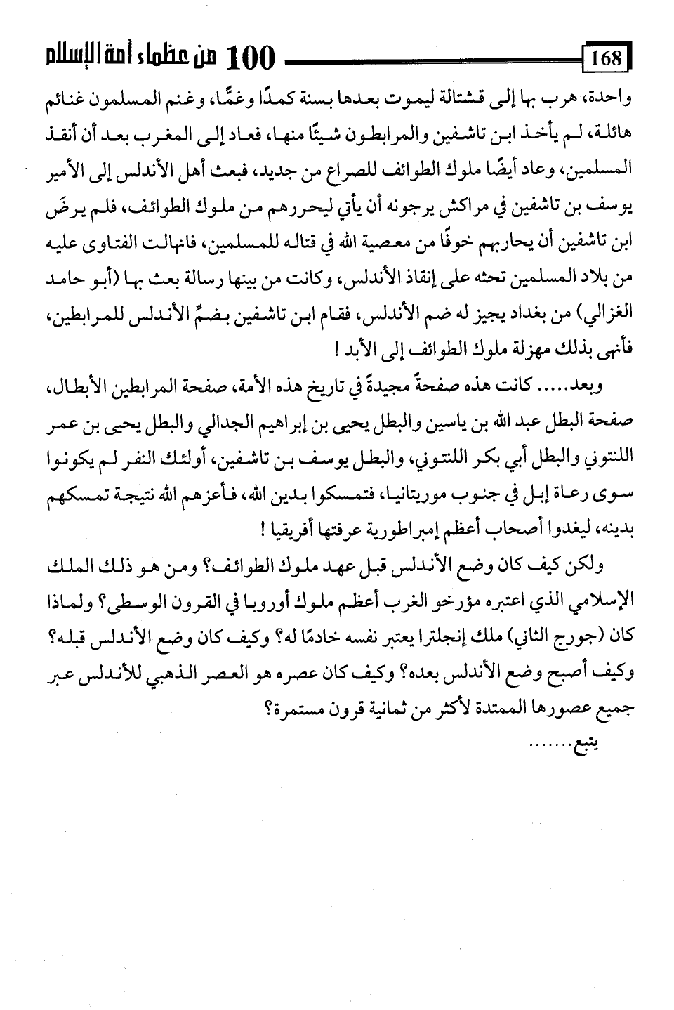 وبعد. . . . كانت هذه صفحةً مجيدةً في تاريخ هذه الأمة، صفحة المرابطين الأبطال، صفحة البطل عبد اللَّه بن ياسين والبطل يحيى بن إبراهيم الجدالي والبطل يحيى بن عمر اللنتوني والبطل أبي بكر اللنتوني، والبطل يوسف بن تاشفين، أولئك النفر لم يكونوا سوى رعاة إبل في جنوب موريتانيا، فتمسكوا بدين اللَّه، فأعزهم اللَّه نتيجة تمسكهم بدينه، ليغدوا أصحاب أعظم إمبراطورية عرفتها أفريقيا!