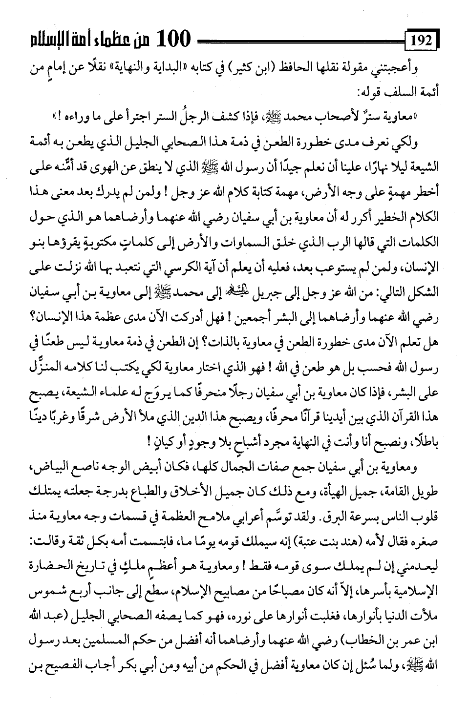 ولكي نعرف مدى خطورة الطعن في ذمة هذا الصحابي الجليل الذي يطعن به أئمة الشيعة ليلا نهارًا، علينا أن نعلم جيدًا أن رسول اللَّه -صلى اللَّه عليه وسلم- الذي لا ينطق عن الهوى قد أمَّنه على أخطر مهمةٍ على وجه الأرض، مهمة كتابة كلام اللَّه عز وجل! ولمن لم يدرك بعد معنى هذا الكلام الخطير أكرر له أن معاوية بن أبي سفيان رضي اللَّه عنهما وأرضاهما هو الذي حول الكلمات التي قالها الرب الذي خلق السماوات والأرض إلى كلماتٍ مكتوبةٍ يقرؤها بنو الإنسان، ولمن لم يستوعب بعد، فعليه أن يعلم أن آية الكرسي التي نتعبد بها اللَّه نزلت على الشكل التالي: من اللَّه عز وجل إلى جبريل -عليه السلام- إلى محمد -صلى اللَّه عليه وسلم- إلى معاوية بن أبي سفيان رضي اللَّه عنهما وأرضاهما إلى البشر أجمعين! فهل أدركت الآن مدى عظمة هذا الإنسان؟ هل تعلم الآن مدى خطورة الطعن في معاوية بالذات؟ إن الطعن في ذمة معاوية ليس طعنًا في رسول اللَّه فحسب بل هو طعن في اللَّه! فهو الذي اختار معاوية لكي يكتب لنا كلامه المنزّل على البشر، فإذا كان معاوية بن أبي سفيان رجلًا منحرفًا كما يروَج له علماء الشيعة، يصبح هذا القرآن الذي بين أيدينا قرآنًا محرفًا، ويصبح هذا الدين الذي ملأ الأرض شرقًا وغربًا دينًا باطلًا، ونصيح أنا وأنت في النهاية مجرد أشباحٍ بلا وجودٍ أو كيانٍ!
