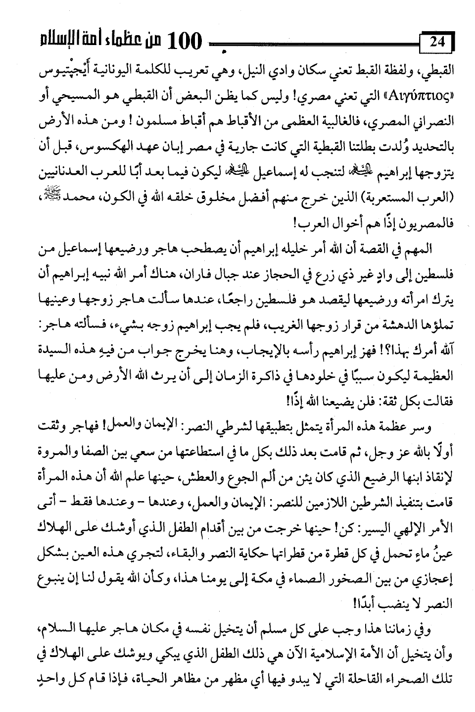 وفي زماننا هذا وجب على كل مسلم أن يتخيل نفسه في مكان هاجر عليها السلام، وأن يتخيل أن الأمة الإسلامية الآن هي ذلك الطفل الذي يبكي ويوشك على الهلاك في تلك الصحراء القاحلة التي لا يبدو فيها أي مظهر من مظاهر الحياة، فإذا قام كل واحدٍ