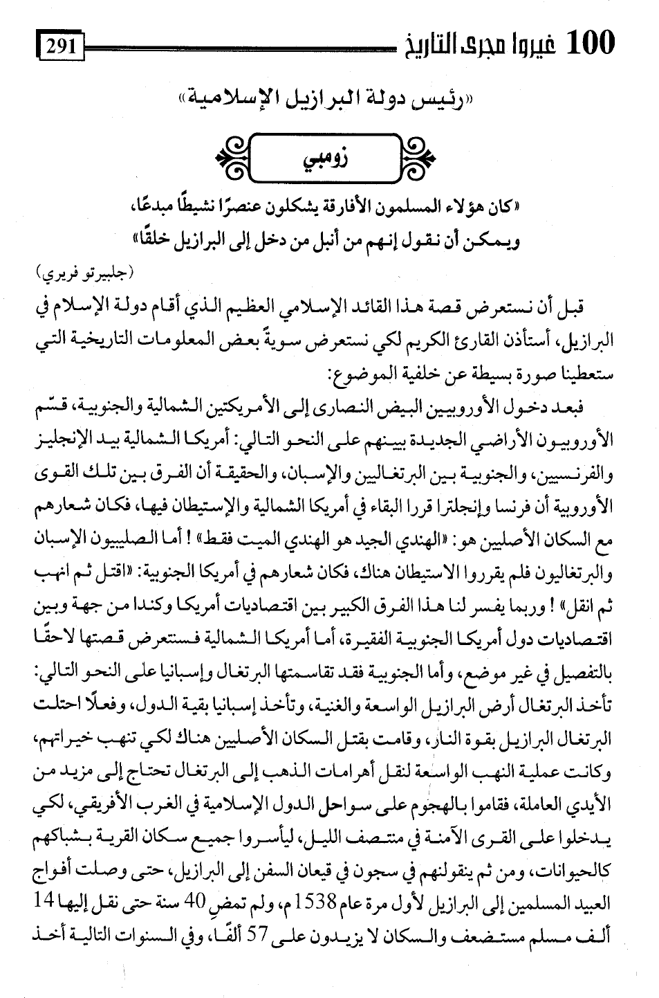" كان هؤلاء المسلمون الأفارقة يشكلون عنصرًا نشيطا مبدعًا، ويمكن أن نقول إنهم من أنبل من دخل إلى البرازيل خلقًا"
