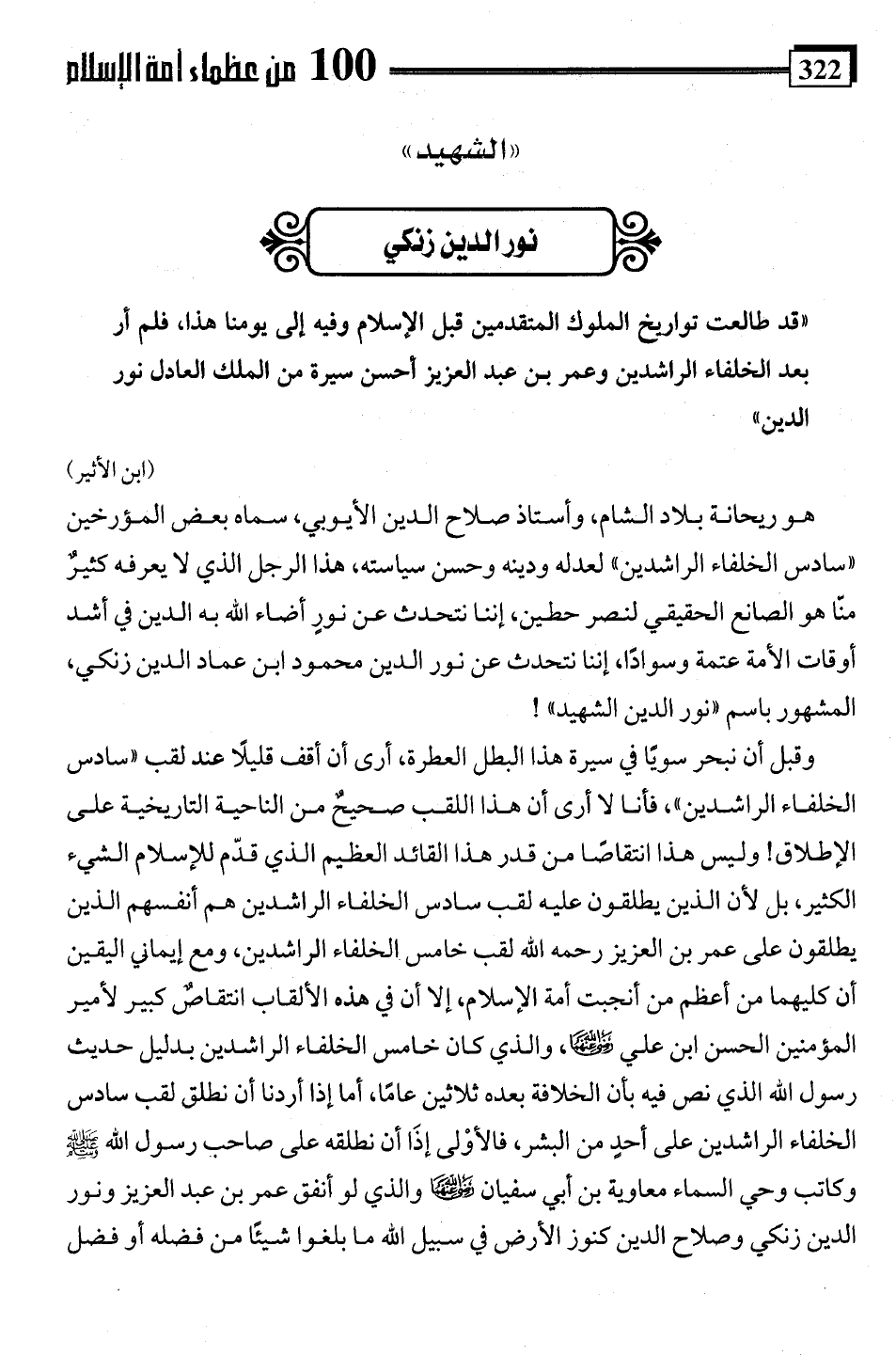 وقبل أن نبحر سويًا في سيرة هذا البطل العطرة، أرى أن أقف قليلًا عند لقب "سادس الخلفاء الراشدين"، فأنا لا أرى أن هذا اللقب صحيح من الناحية التاريخية على الإطلاق! وليس هذا انتقاصًا من قدر هذا القائد العظيم الذي قدّم للإسلام الشيء الكثير، بل لأن الذين يطلقون عليه لقب سادس الخلفاء الراشدين هم أنفسهم الذين يطلقون على عمر بن العزيز رحمه اللَّه لقب خامس الخلفاء الراشدين، ومع إيماني اليقين أن كليهما من أعظم من أنجبت أمة الإِسلام، إلا أن في هذه الألقاب انتقاصٌ كبير لأمير المؤمنين الحسن ابن علي -رضي اللَّه عنهما-، والذي كان خامس الخلفاء الراشدين بدليل حديث رسول اللَّه الذي نص فيه بأن الخلافة بعده ثلاثين عامًا، أما إذا أردنا أن نطلق لقب سادس الخلفاء الراشدين على أحدٍ من البشر، فالأوْلى إذَا أن نطلقه على صاحب رسول اللَّه -صلى اللَّه عليه وسلم- وكاتب وحي السماء معاوية بن أبي سفيان -رضي اللَّه عنهما- والذي لو أنفق عمر بن عبد العزيز ونور الدين زنكي وصلاح الدين كنوز الأرض في سبيل اللَّه ما بلغوا شيئًا من فضله أو فضل