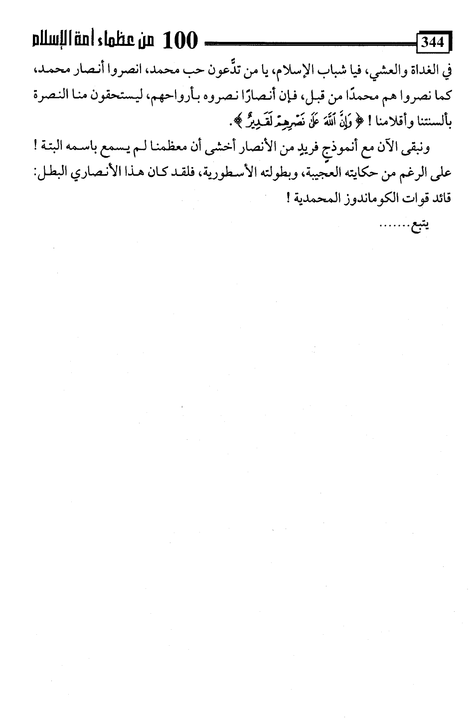 في الغداة والعشي، فيا شباب الإِسلام، يا من تدعون حب محمد، انصروا أنصار محمد، كما نصروا هم محمدًا من قبل، فإن أنصارًا نصروه بأرواحهم، ليستحقون منا النصرة بألسنتنا وأقلامنا! {وَإِنَّ اللَّهَ عَلَى نَصْرِهِمْ لَقَدِيرٌ}.