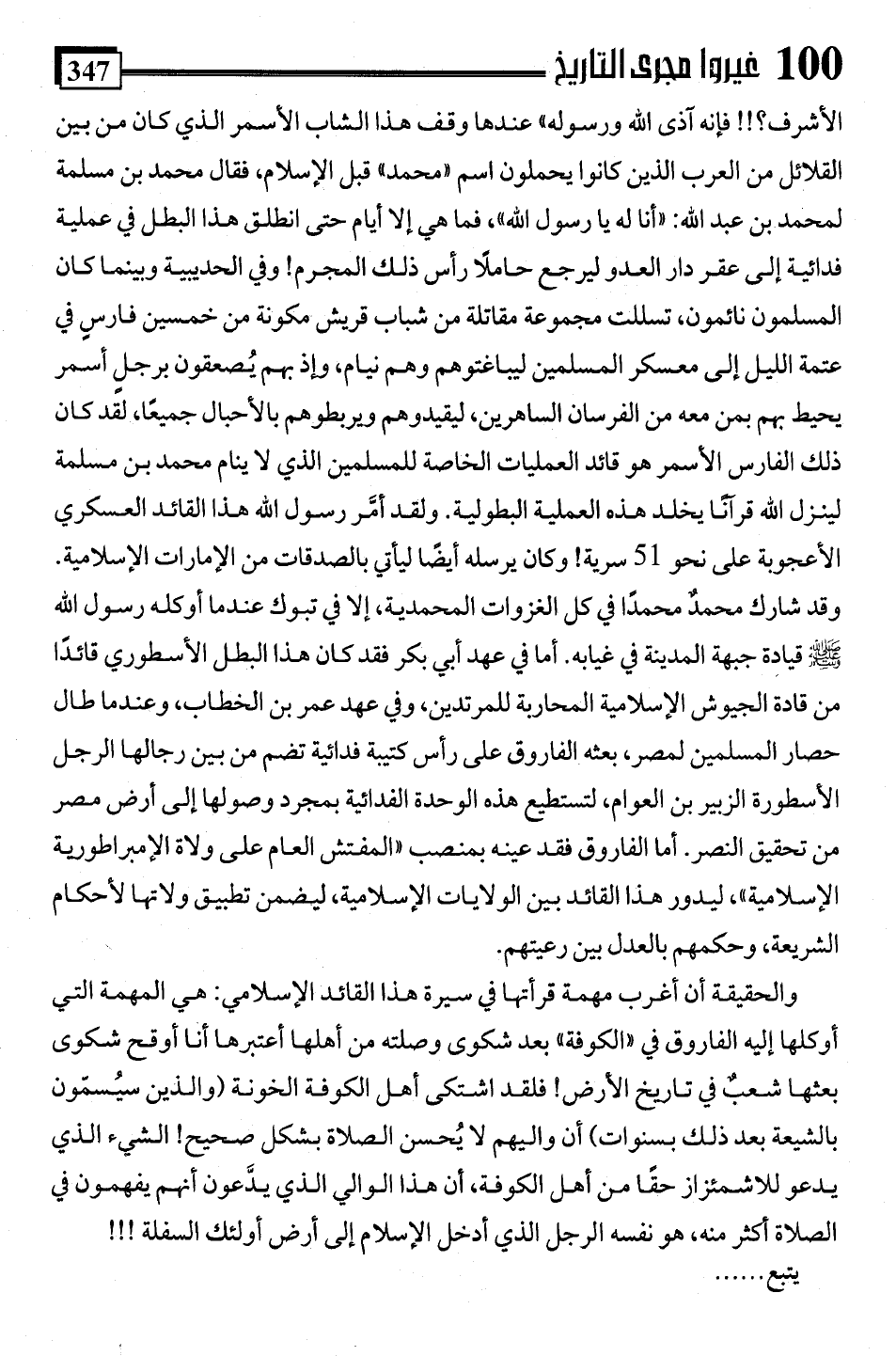 الأشرف؟!! فإنه آذى اللَّه ورسوله" عندها وقف هذا الشاب الأسمر الذي كان من بين القلائل من العرب الذين كانوا يحملون اسم "محمد" قبل الإِسلام، فقال محمد بن مسلمة لمحمد بن عبد اللَّه: "أنا له يا رسول اللَّه"، فما هي إلا أيام حتى انطلق هذا البطل في عملية فدائية إلى عقر دار العدو ليرجع حاملًا رأس ذلك المجرم! وفي الحديبية وبينما كان المسلمون نائمون، تسللت مجموعة مقاتلة من شباب قريش مكونة من خمسين فارسٍ في عتمة الليل إلى معسكر المسلمين ليباغتوهم وهم نيام، وإذ بهم يُصعقون برجلٍ أسمر يحيط بهم بمن معه من الفرسان الساهرين، ليقيدوهم ويربطوهم بالأحبال جميعًا، لقد كان ذلك الفارس الأسمر هو قائد العمليات الخاصة للمسلمين الذي لا ينام محمد بن مسلمة لينزل اللَّه قرآنًا يخلد هذه العملية البطولية. ولقد أمَّر رسول اللَّه هذا القائد العسكري الأعجوبة على نحو 51 سرية! وكان يرسله أيضًا ليأتي بالصدقات من الإمارات الإِسلامية. وقد شارك محمدٌ محمدًا في كل الغزوات المحمدية، إلا في تبوك عندما أوكله رسول اللَّه -صلى اللَّه عليه وسلم- قيادة جبهة المدينة في غيابه. أما في عهد أبي بكر فقد كان هذا البطل الأسطوري قائدًا من قادة الجيوش الإِسلامية المحاربة للمرتدين، وفي عهد عمر بن الخطاب، وعندما طال حصار المسلمين لمصر، بعثه الفاروق على رأس كتيبة فدائية تضم من بين رجالها الرجل الأسطورة الزبير بن العوام، لتستطيع هذه الوحدة الفدائية بمجرد وصولها إلى أرض مصر من تحقيق النصر. أما الفاروق فقد عينه بمنصب "المفتش العام على ولاة الإمبراطورية الإِسلامية"، ليدور هذا القائد بين الولايات الإِسلامية، ليضمن تطبيق ولاتها لأحكام الشريعة، وحكمهم بالعدل بين رعيتهم.