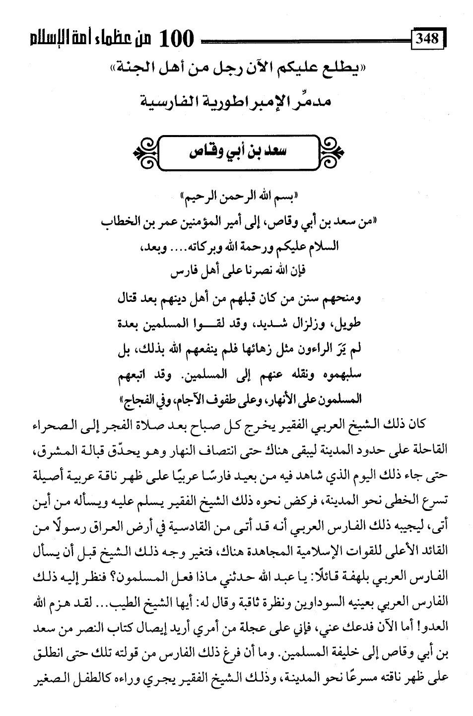 "من سعد بن أبي وقاص، إلى أمير المؤمنين عمر بن الخطاب السلام عليكم ورحمة اللَّه وبركاته. . . . وبعد،