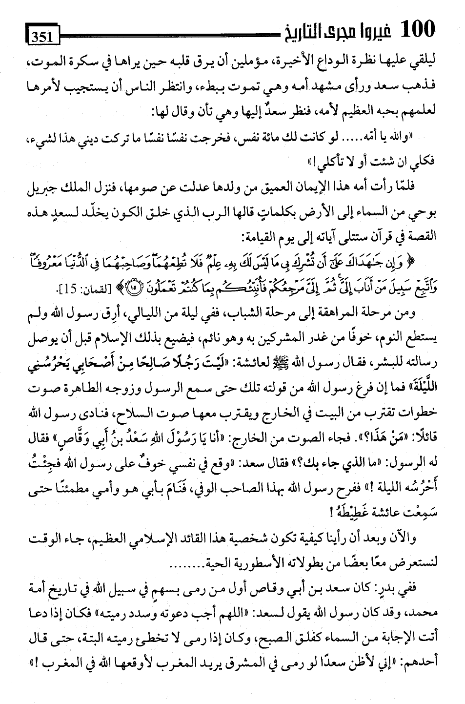 فلمَّا رأت أمه هذا الإيمان العميق من ولدها عدلت عن صومها، فنزل الملك جبريل بوحي من السماء إلى الأرض بكلماتٍ قالها الرب الذي خلق الكون يخلّد لسعدٍ هذه القصة في قرآن ستتلى آياته إلى يوم القيامة: