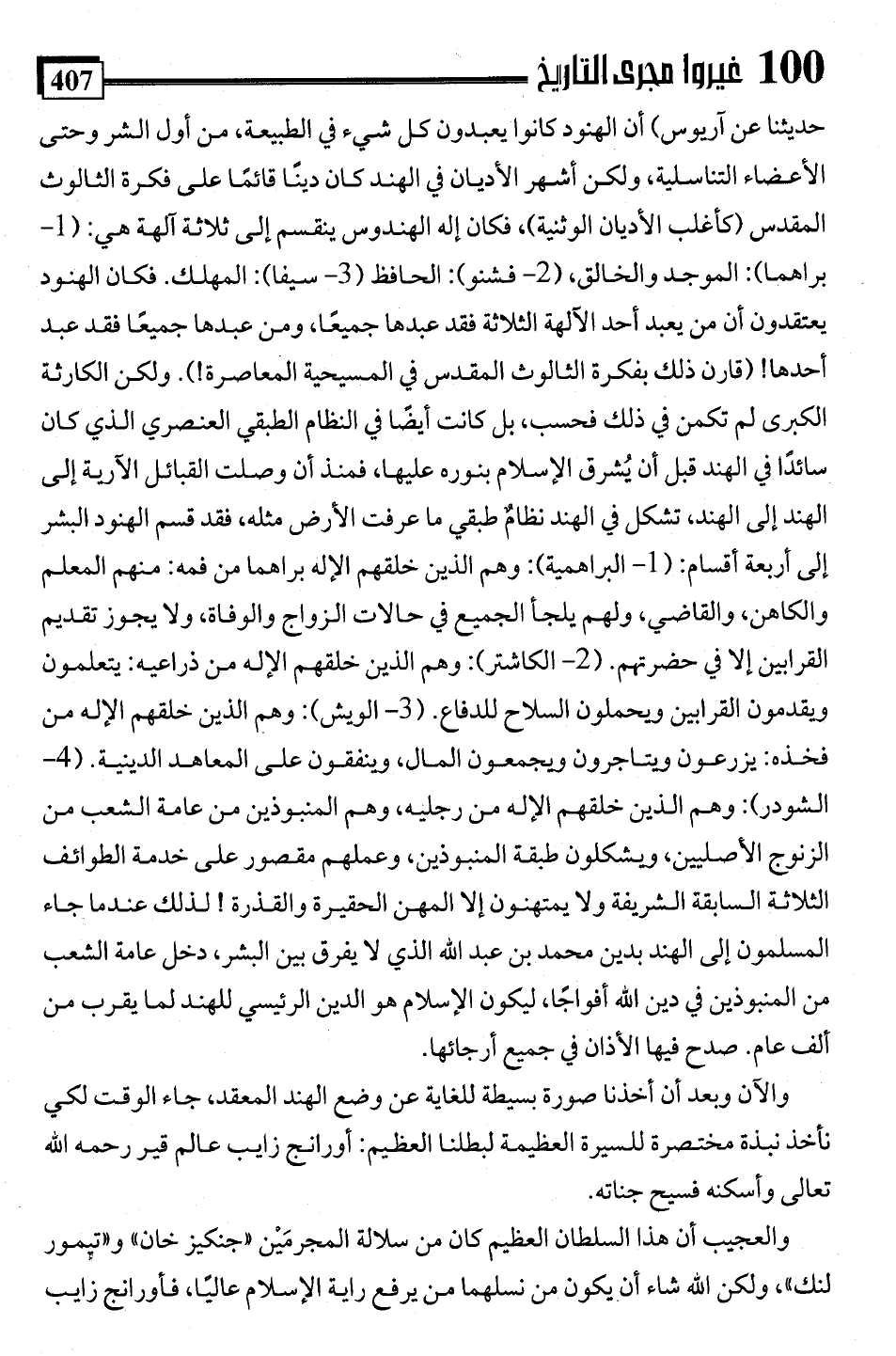 فكان الهنود يعتقدون أن من يعبد أحد الآلهة الثلاثة فقد عبدها جميعًا، ومن عبدها جميعًا فقد عبد أحدها! (قارن ذلك بفكرة الثالوث المقدس في المسيحية المعاصرة!). ولكن الكارثة الكبرى لم تكمن في ذلك فحسب، بل كانت أيضًا في النظام الطبقي العنصري الذي كان سائدًا في الهند قبل أن يُشرق الإسلام بنوره عليها، فمنذ أن وصلت القبائل الآرية إلى الهند إلى الهند، تشكل في الهند نظامٌ طبقي ما عرفت الأرض مثله، فقد قسم الهنود البشر إلى أربعة أقسام: