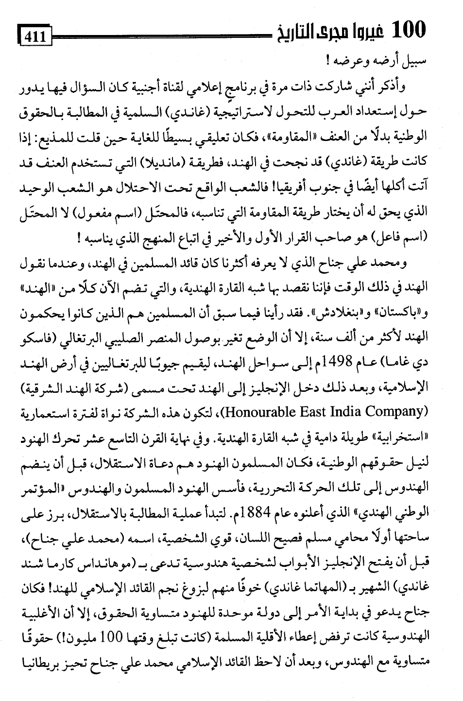 ومحمد علي جناح الذي لا يعرفه أكثرنا كان قائد المسلمين في الهند، وعندما نقول الهند في ذلك الوقت فإننا نقصد بها شبه القارة الهندية، والتي تضم الآن كلًا من "الهند" و"باكستان" و"بنغلادش". فقد رأينا فيما سبق أن المسلمين هم الذين كانوا يحكمون الهند لأكثر من ألف سنة، إلا أن الوضع تغير بوصول المنصر الصليبي البرتغالي (فاسكو دي غاما) عام 1498 م إلى سواحل الهند، ليقيم جيوبًا للبرتغاليين في أرض الهند الإسلامية، وبعد ذلك دخل الإنجليز إلى الهند تحت مسمى (شركة الهند الشرقية) (Honourable East India Company)، لتكون هذه الشركة نواة لفترة استعمارية "استخرابية" طويلة دامية في شبه القارة الهندية. وفي نهاية القرن التاسع عشر تحرك الهنود لنيل حقوقهم الوطنية، فكان المسلمون الهنود هم دعاة الاستقلال، قبل أن ينضم الهندوس إلى تلك الحركة التحررية، فأسس الهنود المسلمون والهندوس "المؤتمر الوطني الهندي" الذي أعلنوه عام 1884 م. لتبدأ عملية المطالبة بالاستقلال، برز على ساحتها أولًا محامي مسلم فصيح اللسان، قوي الشخصية، اسمه (محمد علي جناح)، قبل أن يفتح الإنجليز الأبواب لشخصية هندوسية تدعى بـ (موهانداس كارما شند غاندي) الشهير بـ (المهاتما غاندي) خوفًا منهم لبزوغ نجم القائد الإسلامي للهند! فكان جناح يدعو في بداية الأمر إلى دولة موحدة للهنود متساوية الحقوق، إلا أن الأغلبية الهندوسية كانت ترفض إعطاء الأقلية المسلمة (كانت تبلغ وقتها 100 مليون!) حقوقًا متساوية مع الهندوس، وبعد أن لاحظ القائد الإسلامي محمد علي جناح تحيز بريطانيا