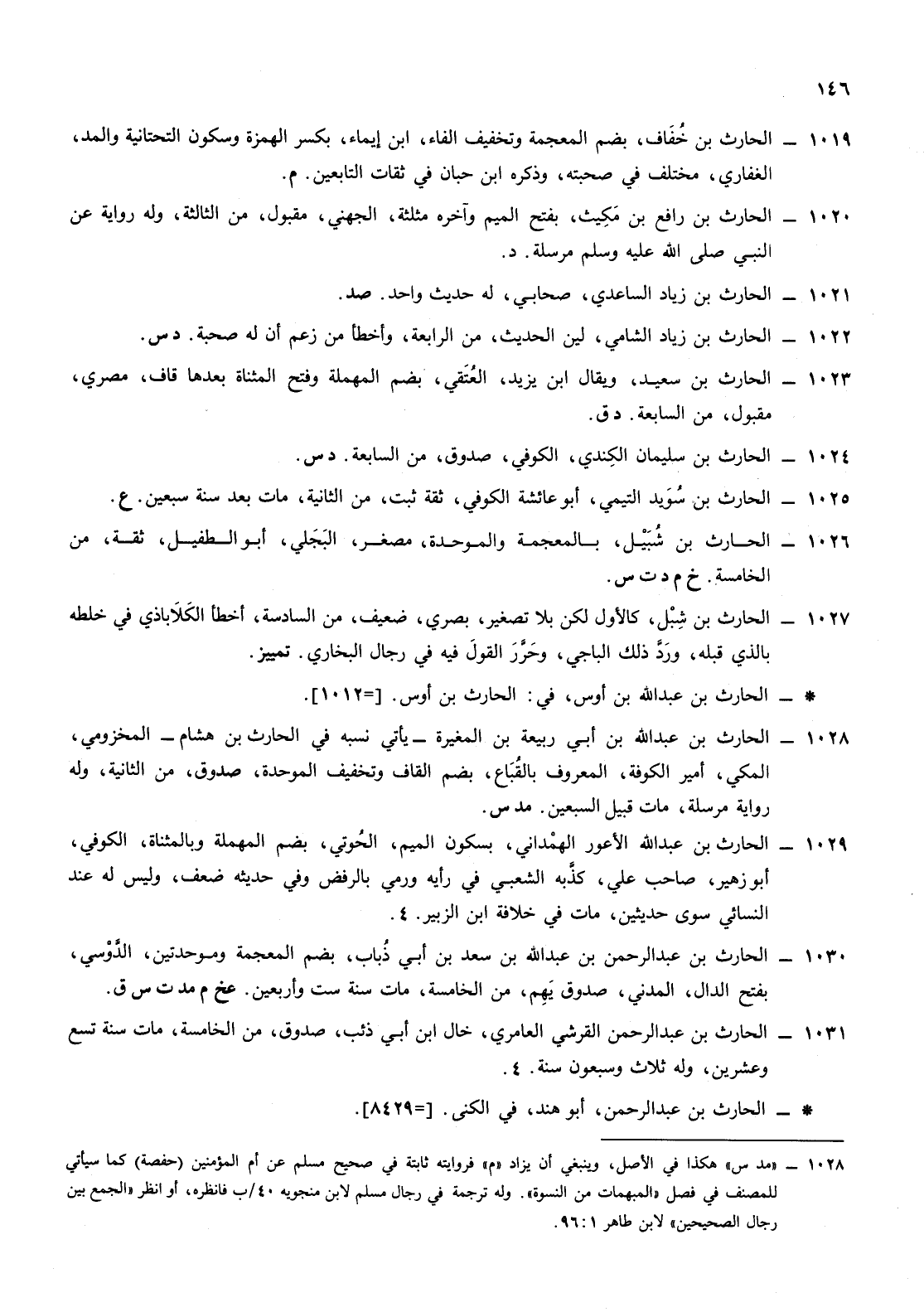 1031- الحارث ابن عبد الرحمن القرشي العامري خال ابن أبي ذئب صدوق من الخامسة مات سنة تسع وعشرين وله ثلاث وسبعون سنة 4
