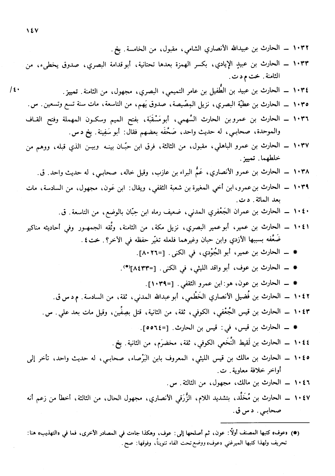 1034- الحارث ابن عبيد ابن الطفيل ابن عامر التميمي البصري مجهول من الثامنة تمييز