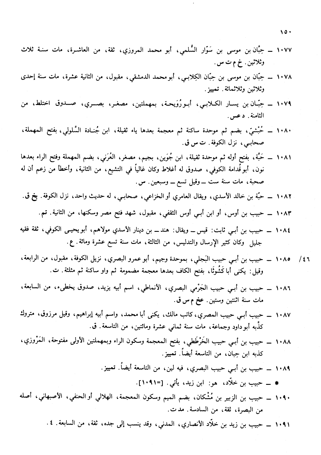 1085- حبيب ابن أبي حبيب البجلي بموحدة وجيم أبو عمرو البصري نزيل الكوفة مقبول من الرابعة وقيل يكنى أبا كشوثا بفتح الكاف بعدها معجمة مضمومة ثم واو ساكنة ثم مثلثة ت