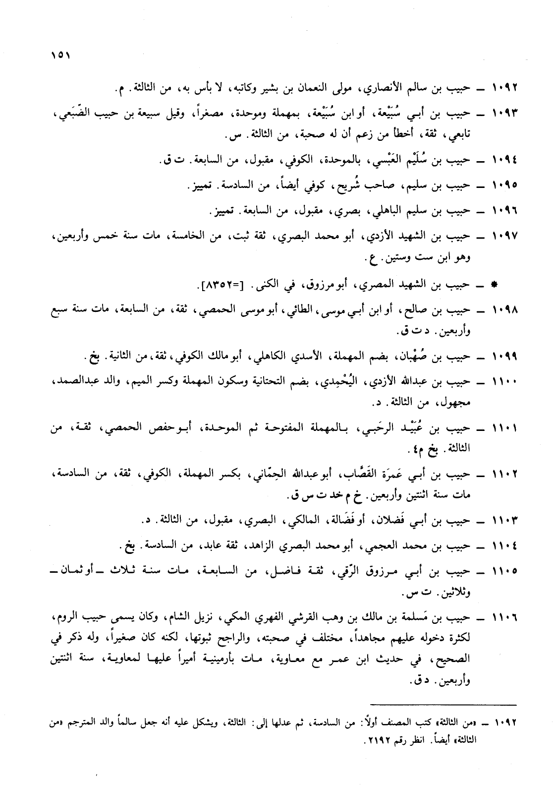 1092- حبيب ابن سالم الأنصاري مولى النعمان ابن بشير وكاتبه لا بأس به من الثالثة م