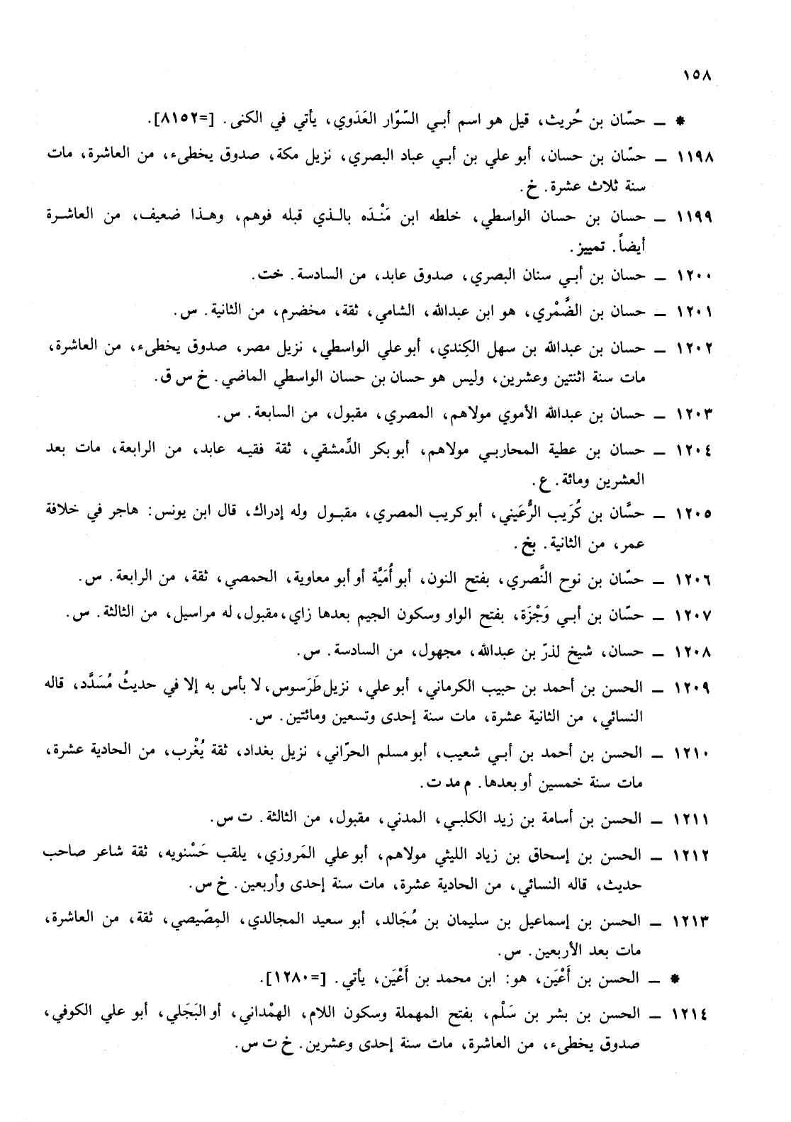 1199- حسان ابن حسان الواسطي خلطه ابن منده بالذي قبله فوهم وهذا ضعيف من العاشرة أيضا تمييز