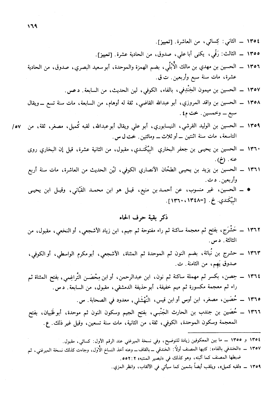 1363- حشرج ابن نباتة بضم النون ثم الموحدة ثم المثناة الأشجعي أبو مكرم الواسطي أو الكوفي صدوق يهم من الثامنة ت