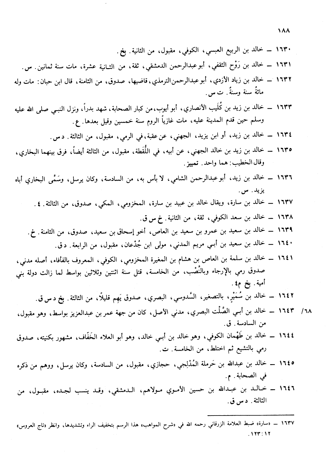1631- خالد ابن روح الثقفي أبو عبد الرحمن الدمشقي ثقة من الثانية عشرة مات سنة ثمانين س